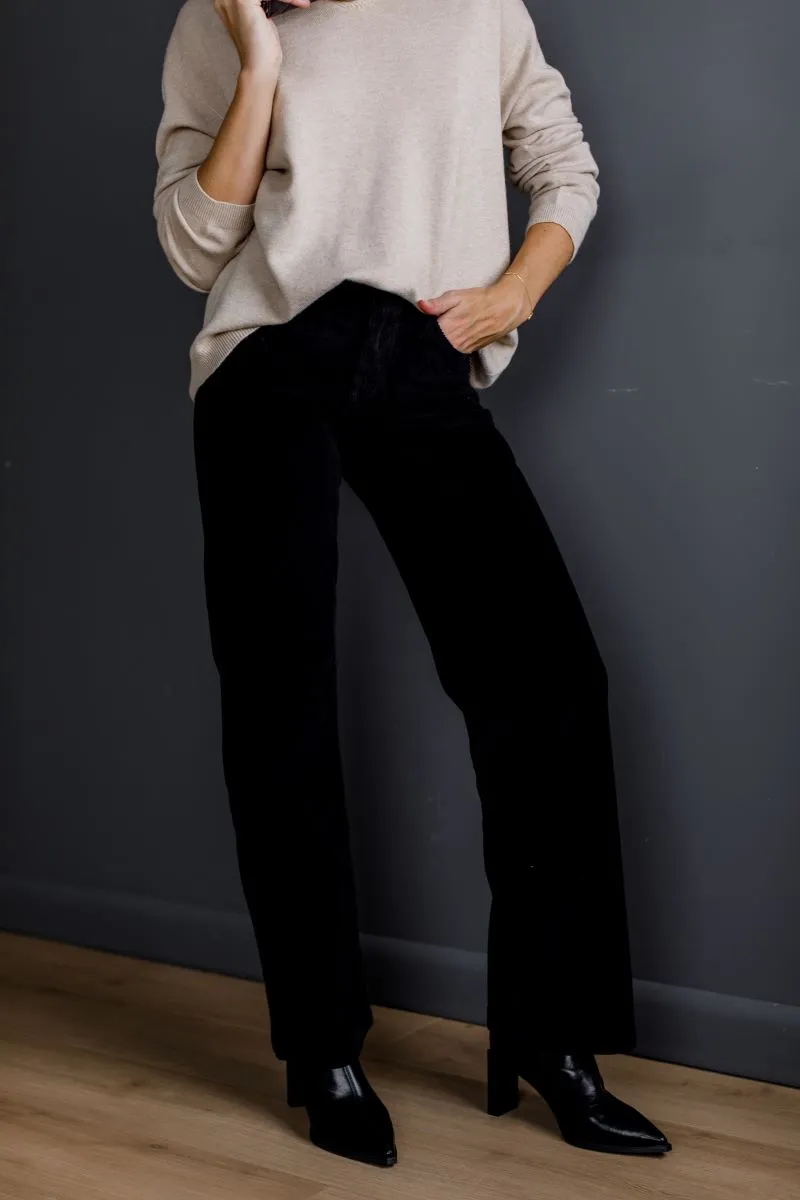 Класичні прямі штани з вельвету глибокого чорного кольору