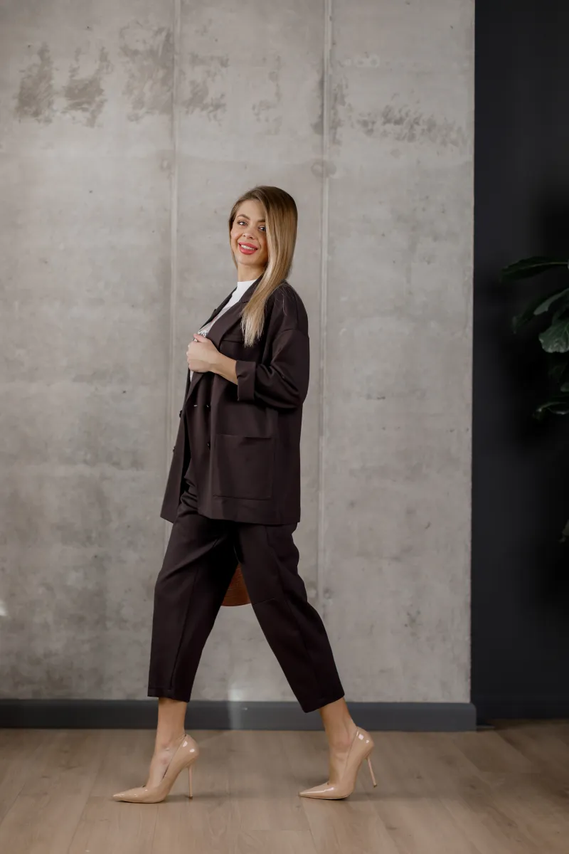 ✔ Фасон: вільний піджак + штани з високою посадкою