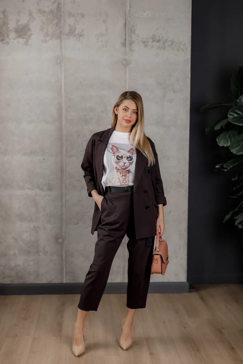 Стильний та елегантний костюм IMPERIAL у класичних кольорах чорного, шоколадного, білого та бургунді – це втілення бездоганного смаку та вишуканості.
