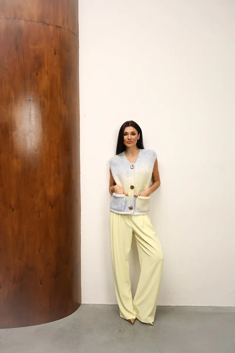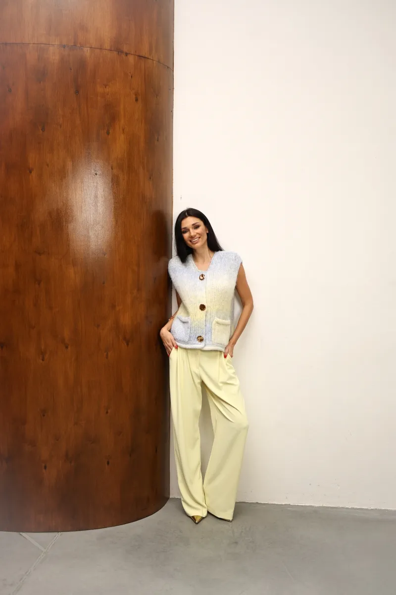 Трендовий лимонний відтінок додає свіжості та легкості образу, а прямий крій візуально подовжує силует і підкреслює фігуру. Модель із високою посадкою створена для максимальної зручності та елегантності.