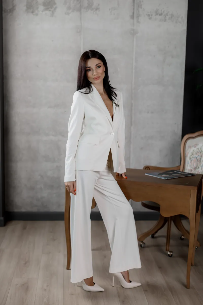 Елегантні італійські трикотажні штани з прямим кроєм у витонченому молочному відтінку.