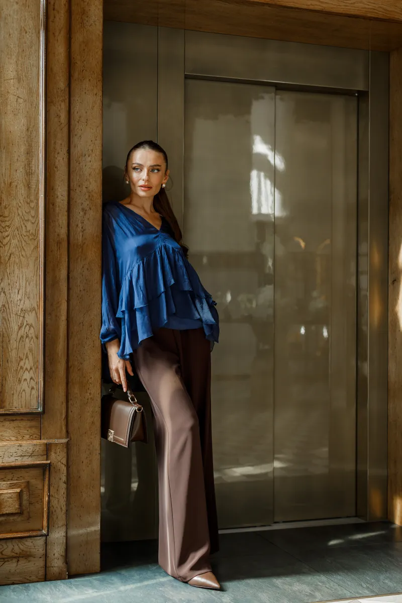 Елегантні широкі штани шоколадного кольору від італійського виробника