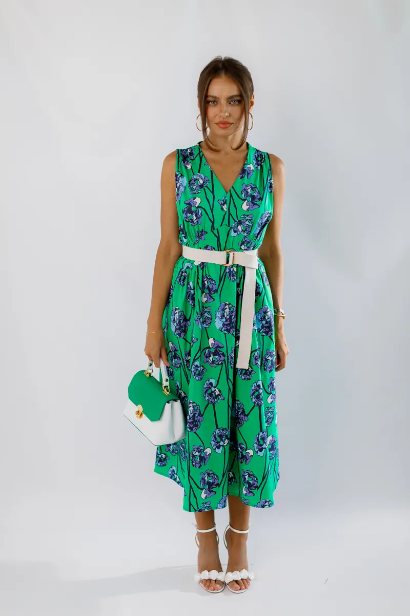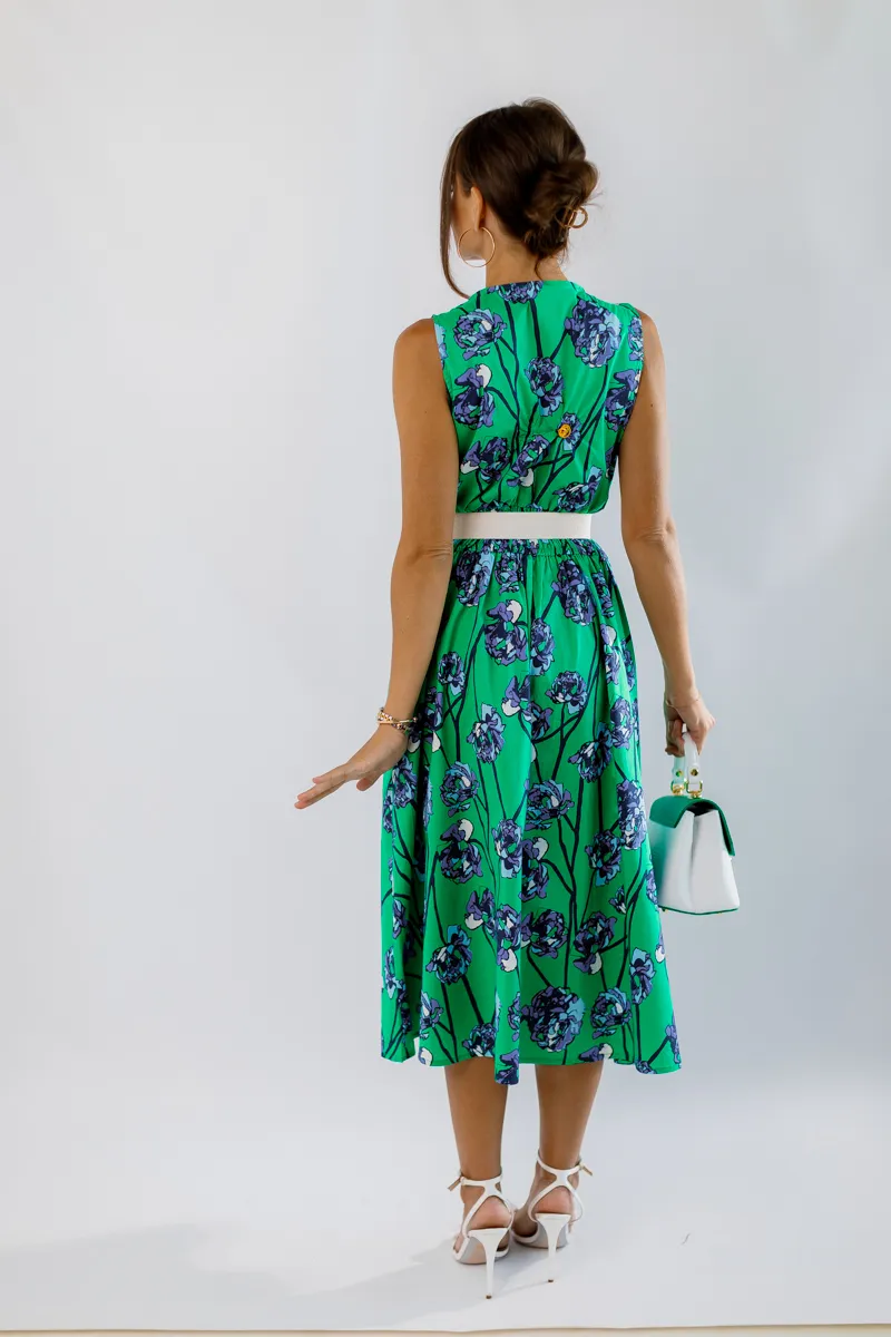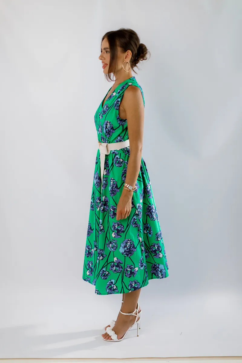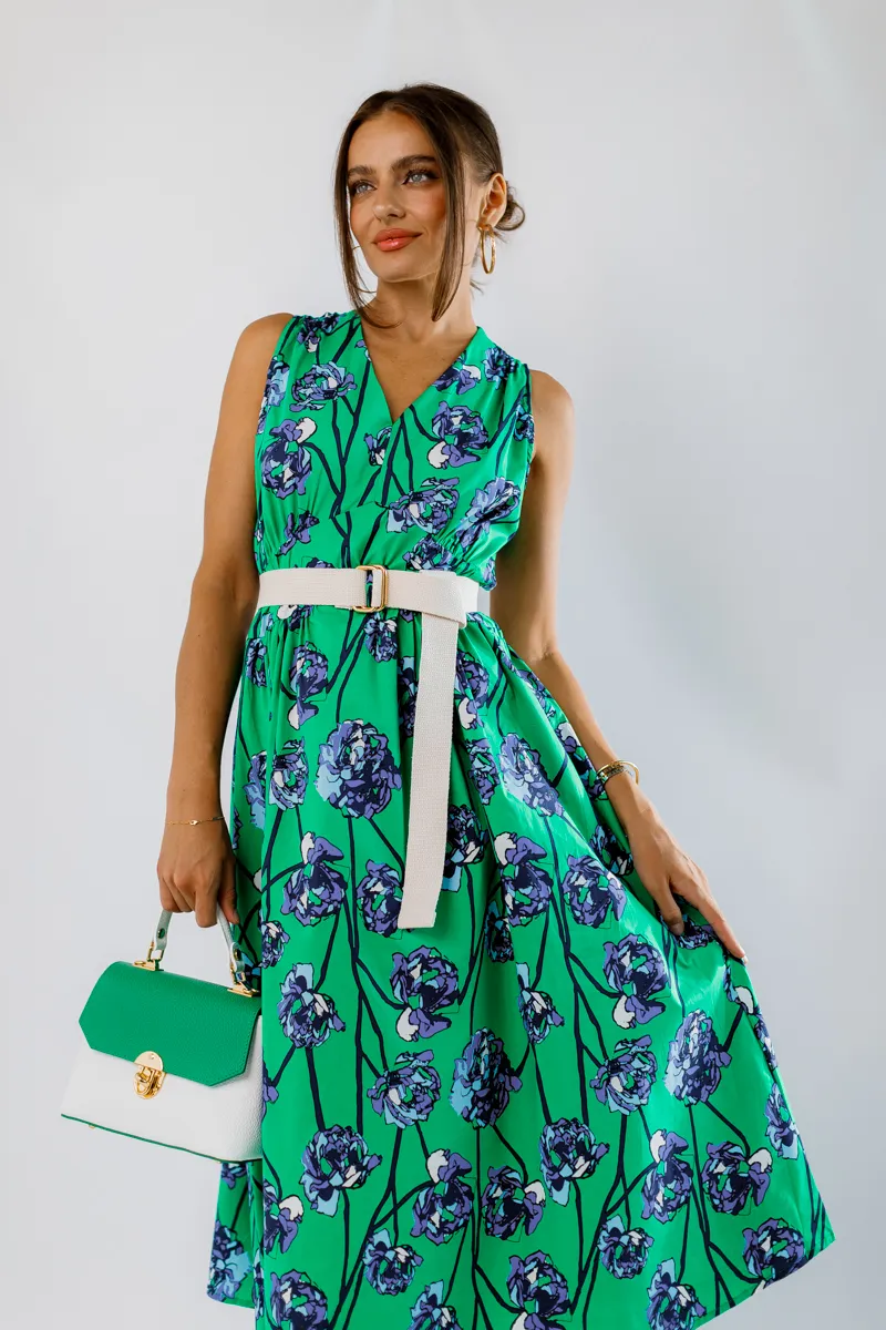 Ця елегантна та комфортна сукня міді від французького виробника виготовлена з 100% натуральної бавовни, що забезпечує максимальний комфорт та легкість. V-подібний виріз додає жіночності та елегантності, а зручна резинка на талії підкреслює фігуру і забезпечує кращу фіксацію. Зелене забарвлення з флористичним принтом додає свіжості та яскравості, роблячи цю сукню ідеальною для літніх прогулянок, зустрічей з друзями або особливих подій.