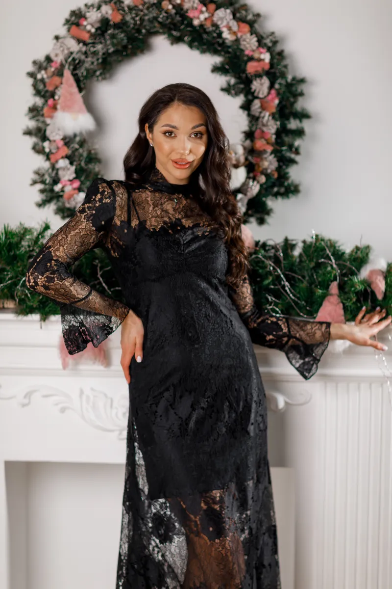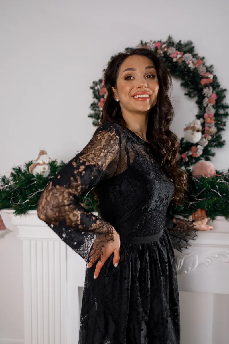 Ця вишукана сукня від італійського бренду IMPERIAL поєднує у собі ніжність та розкіш. Виконана з флорентійського мережива у глибокому чорному кольорі, вона створює неперевершений образ для особливих подій.