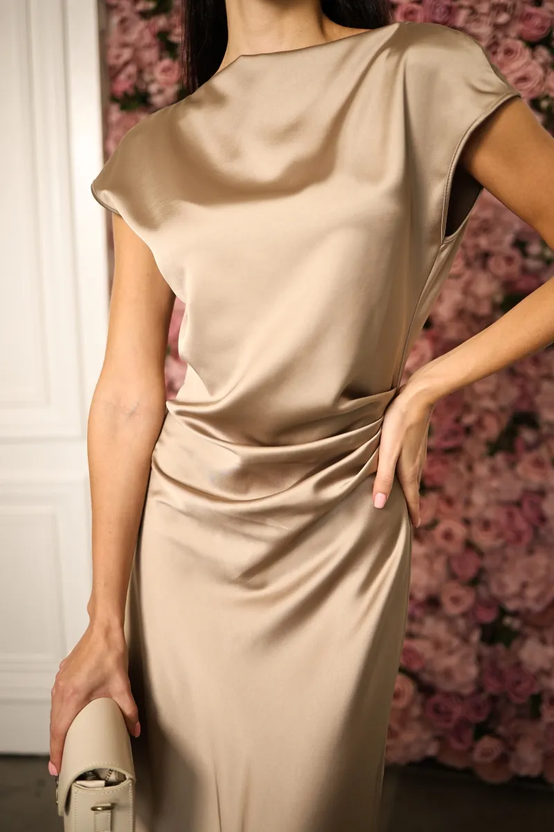 Ця сукня чудово підкреслить вашу фігуру завдяки драпіруванню на талії, а ніжний виріз додасть образу витонченості. Оберіть свій ідеальний колір і насолоджуйтесь вишуканим італійським стилем з сукнею IMPERIAL.