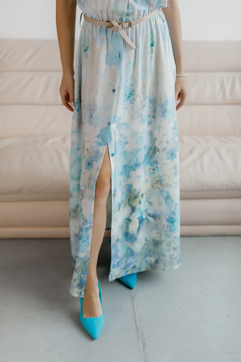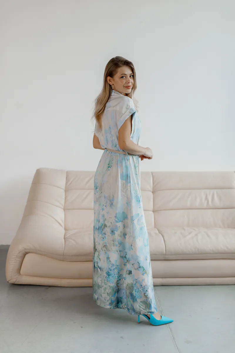 Довга сукня з акварельно-блакитним принтом