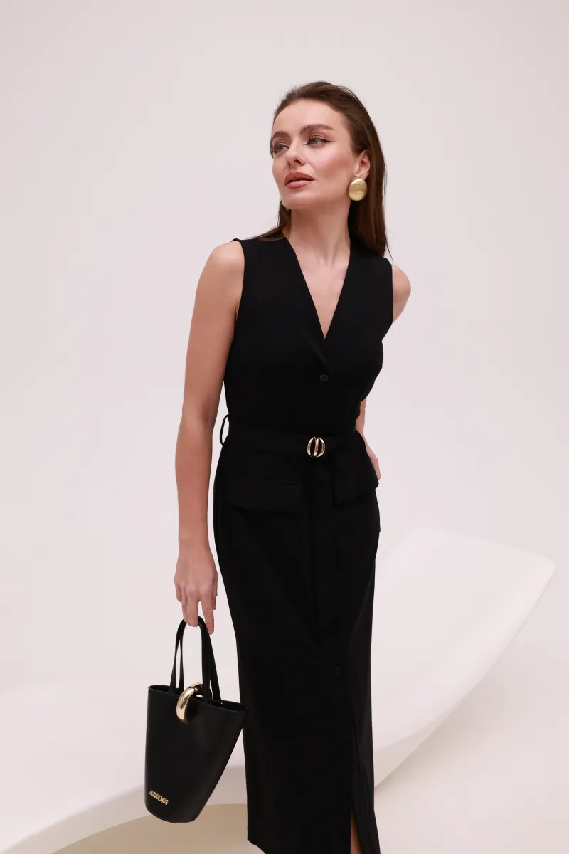 Лаконічний дизайн доповнений функціональними деталями, які надають сукні структури та міського настрою.