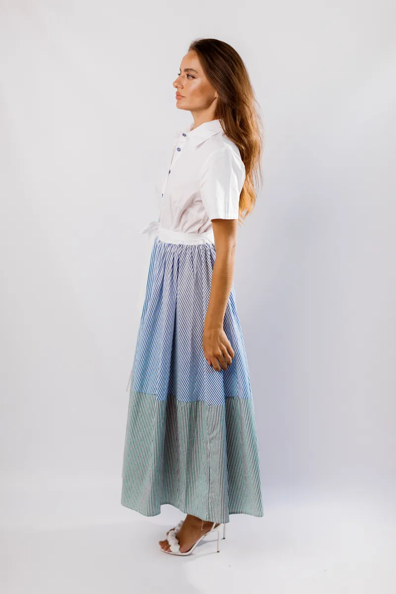 Сукня максі з натуральної бавовни з комірцем на гудзиках та поясом від французького виробника