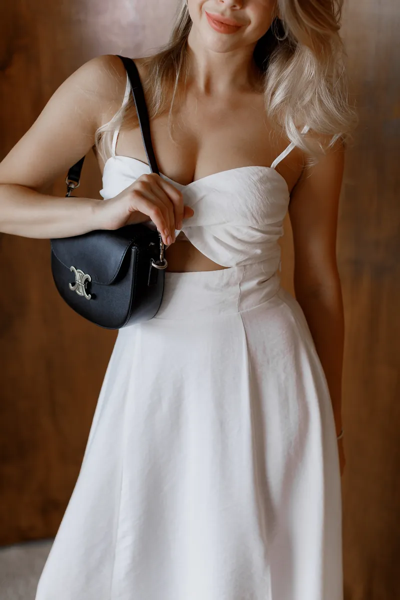 Тонкі бретелі додають ніжності образу, а завищена посадка підкреслює талію, візуально подовжуючи силует. Глибокий виріз на нозі дарує легкість рухів та робить образ ще більш привабливим. Ідеальна для побачень, вечірок біля моря або святкових літніх подій.