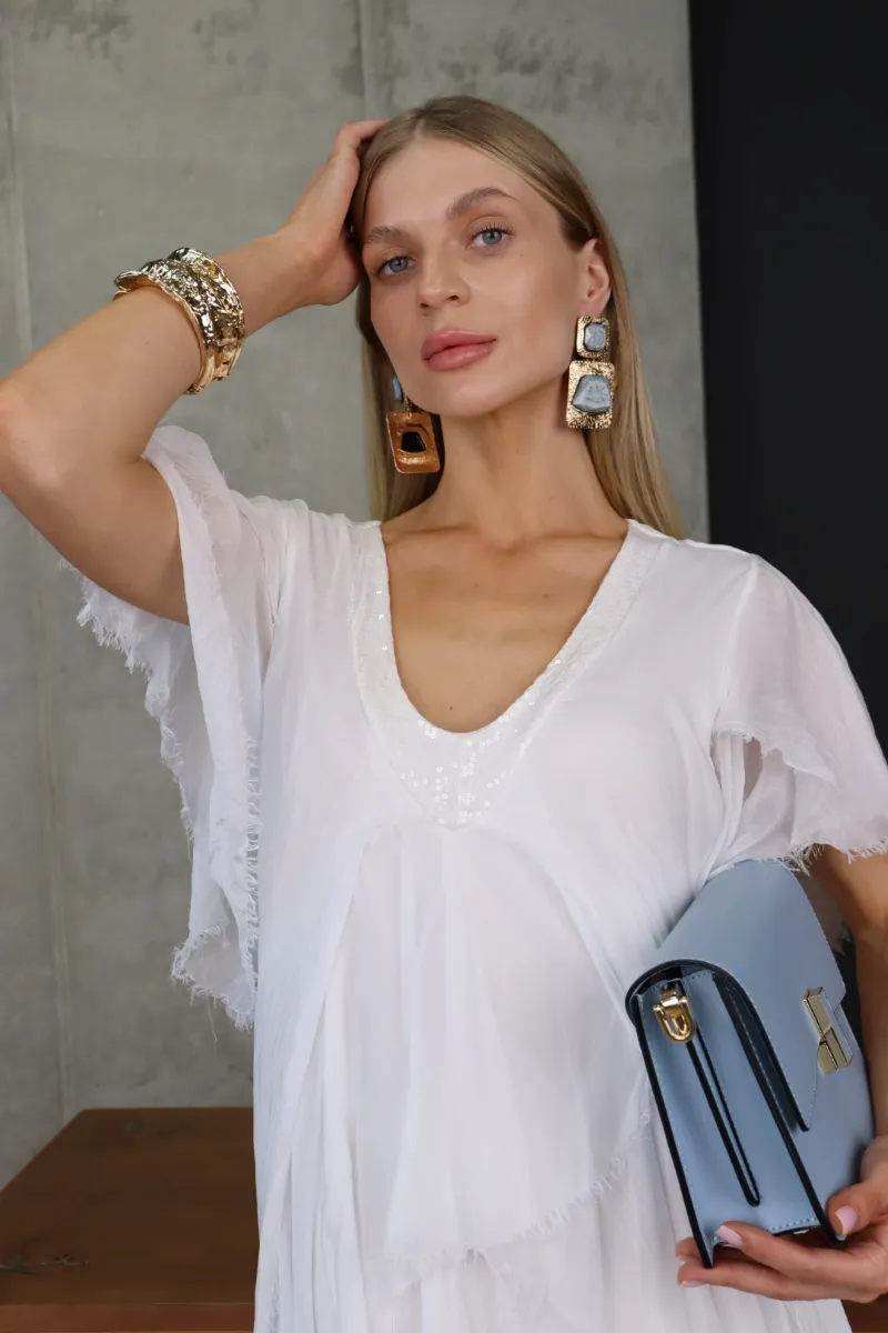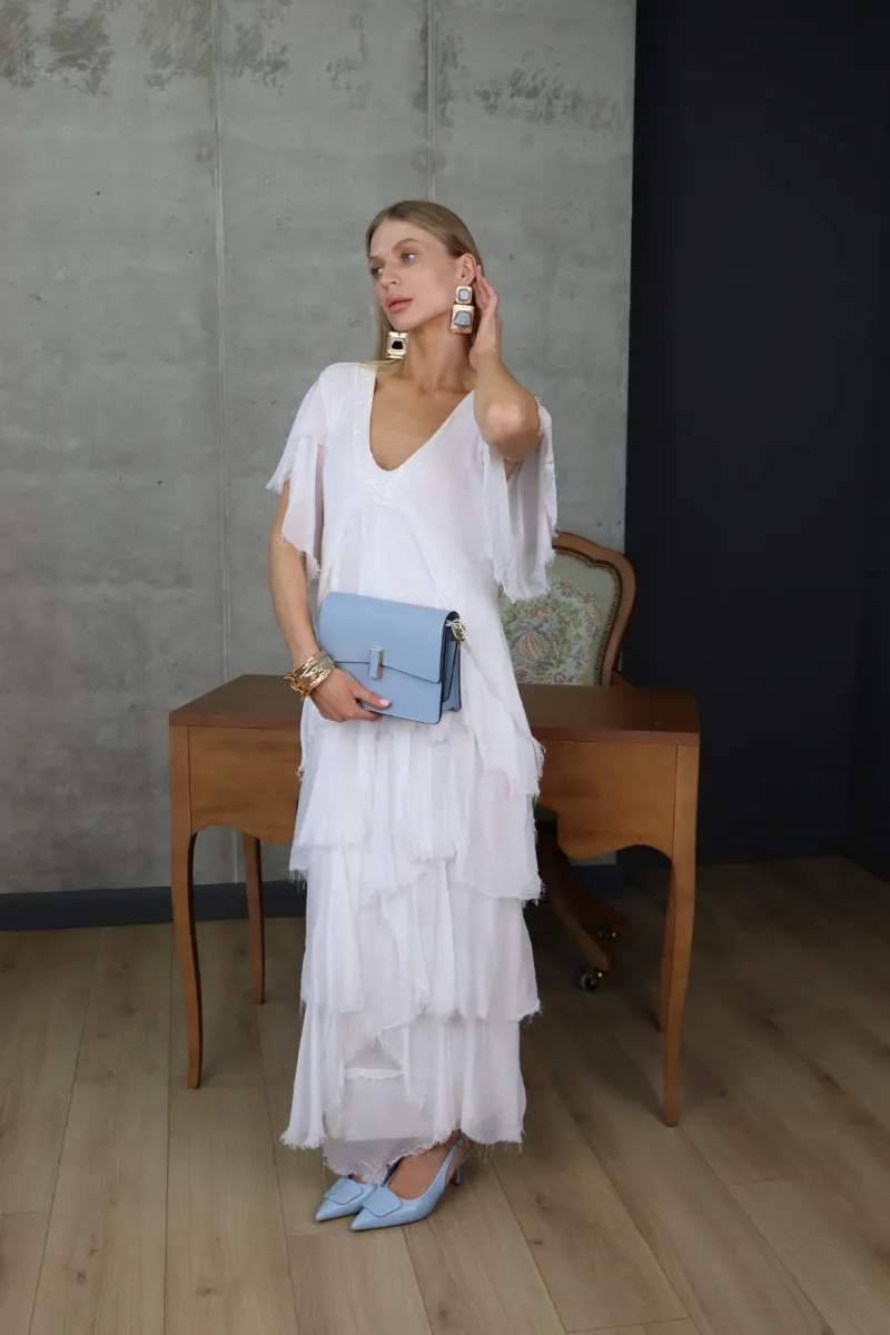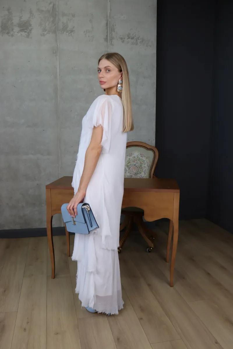 Ніжна шовкова сукня у білому відтінку — втілення легкості, чистоти та жіночності.