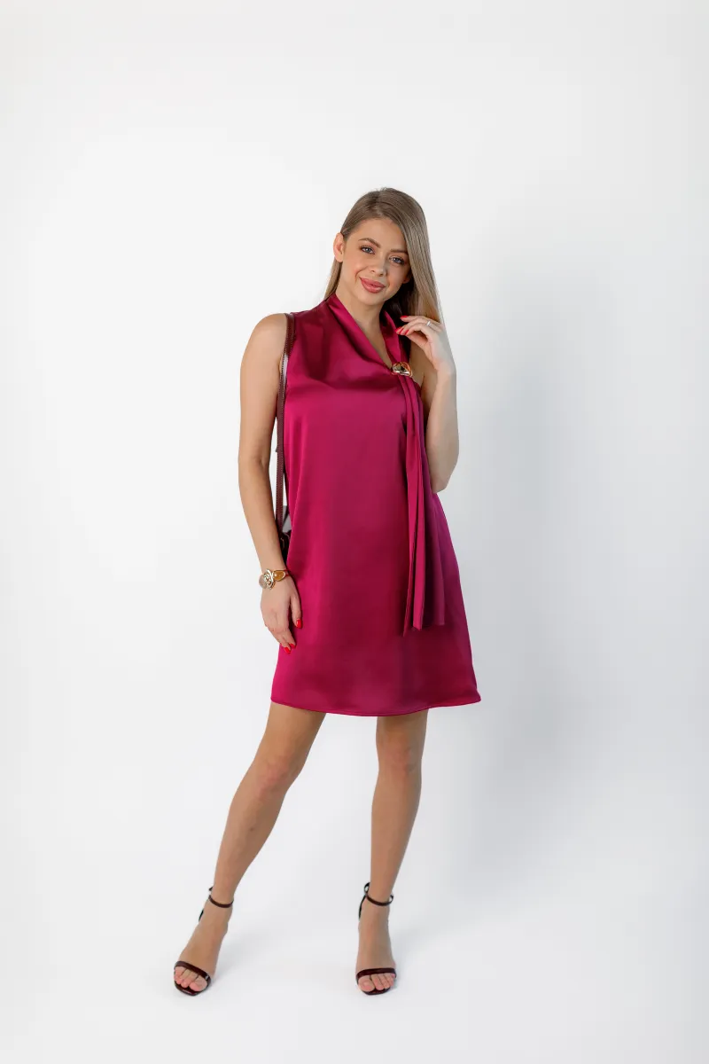 Головний акцент – вишуканий бант на шиї, що додає образу нотку аристократичності та шарму. Короткі рукави роблять сукню універсальною та комфортною для будь-якої пори року.
