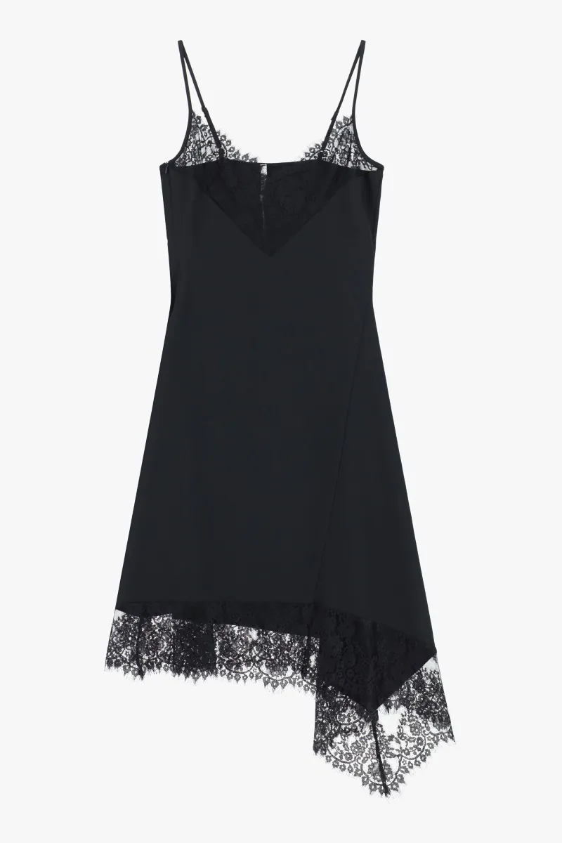 Чорна асиметрична сатинова сукня-комбінація з мереживом для елегантних образів.