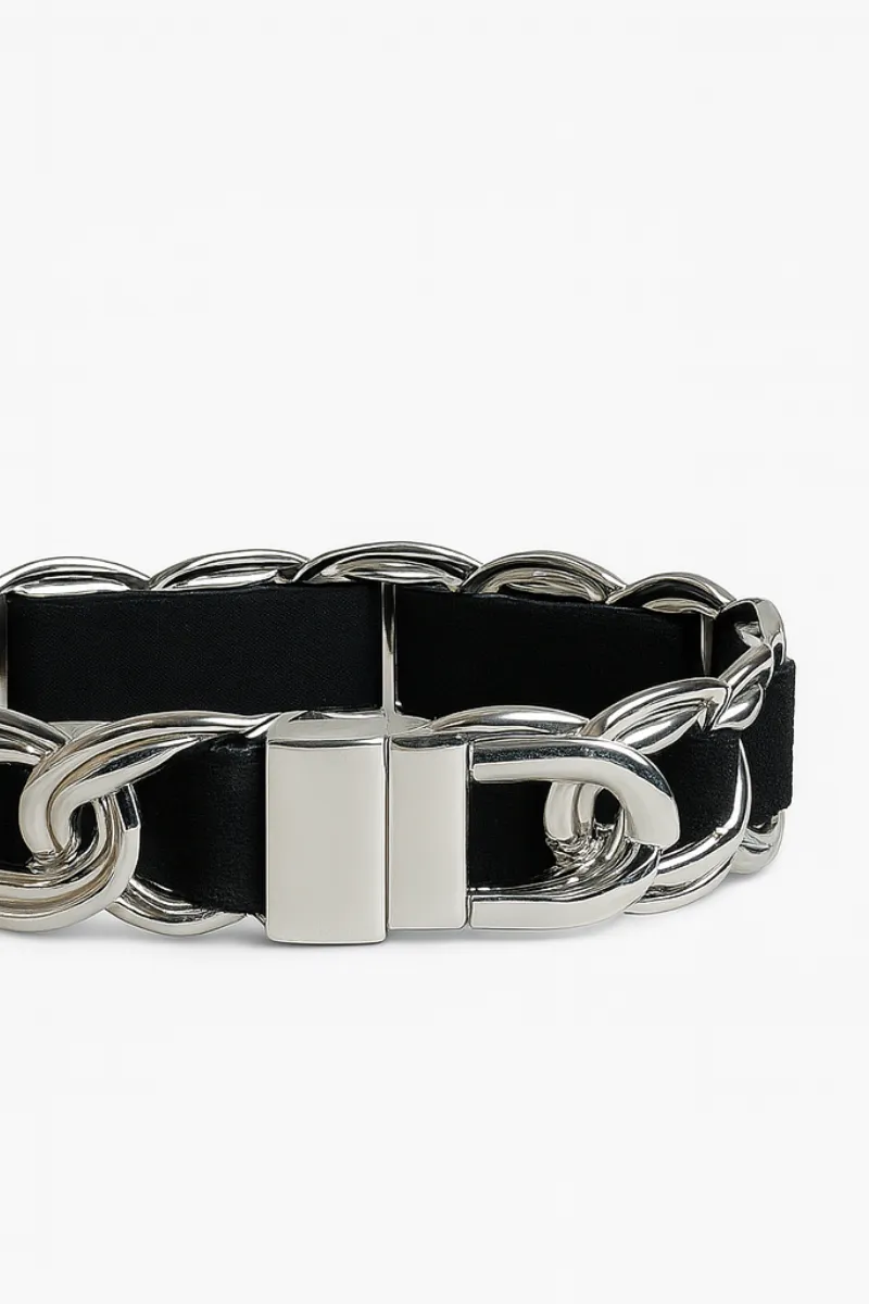 ремінь в чорному кольорі, з масивними срібними ланками