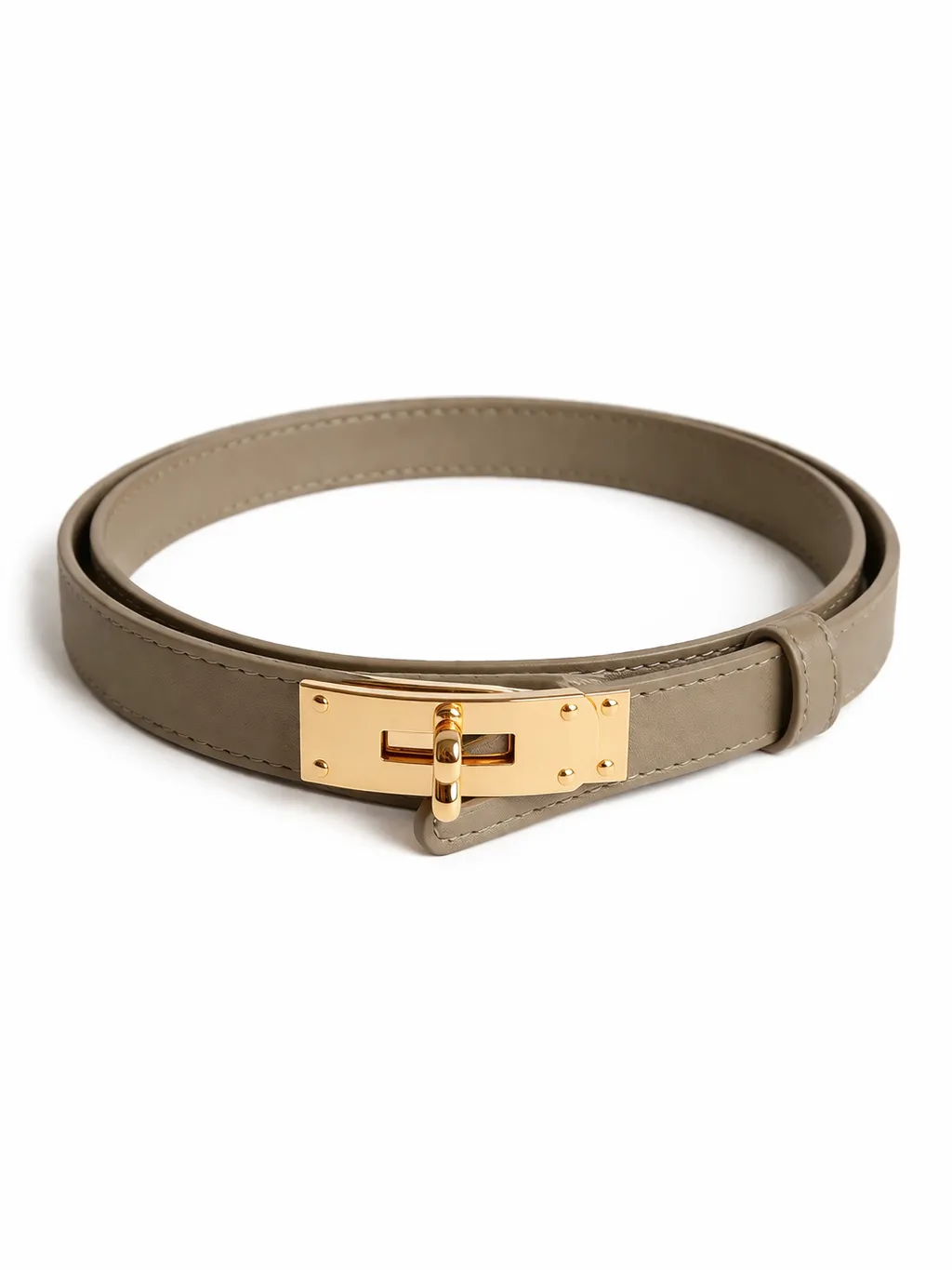 Золота пряжка ефектно контрастує з кольором ременя, додаючи образу тепла та вишуканості.