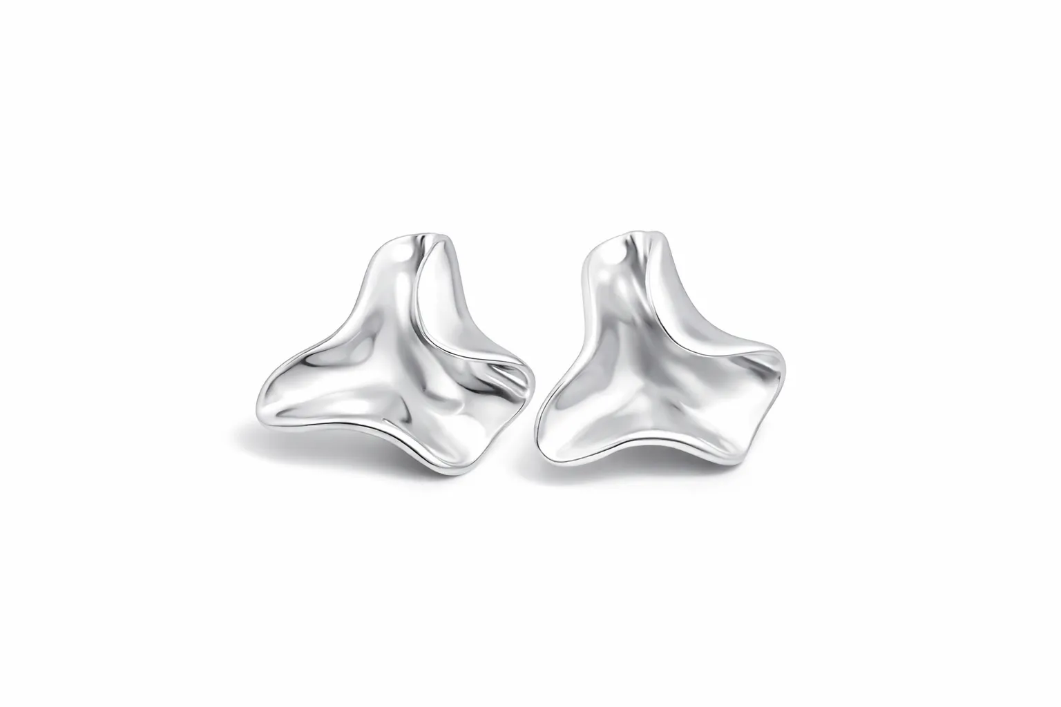 Сучасні сережки з виразною абстрактною формою у холодному срібному відтінку.