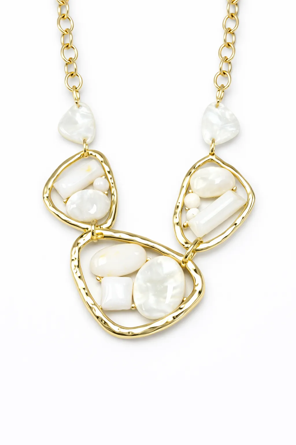 Елегантне кольє з ніжними світлими кам’яними вставками, оформленими у витончені золотисті форми.