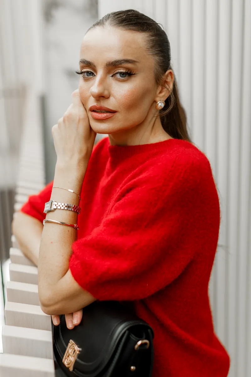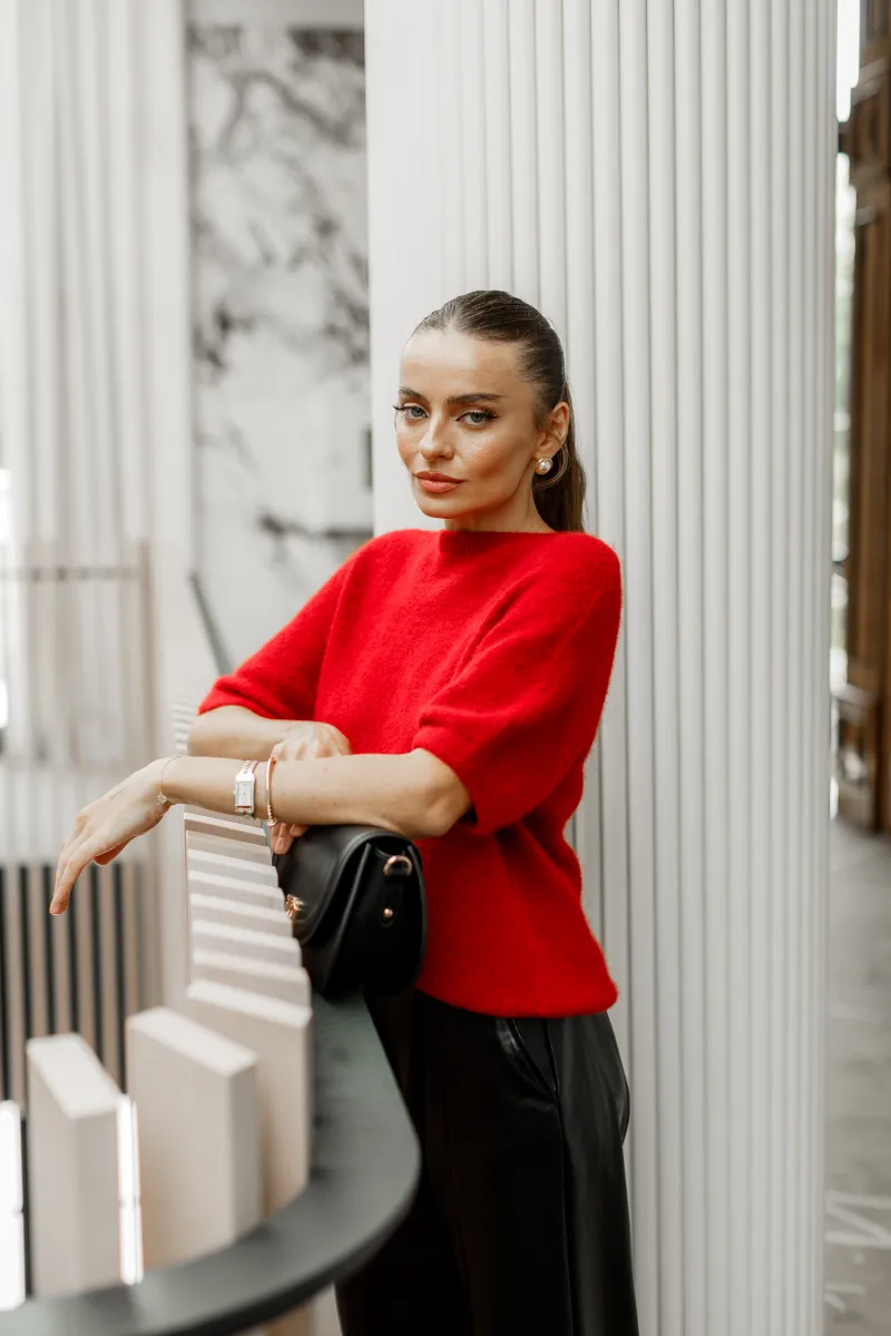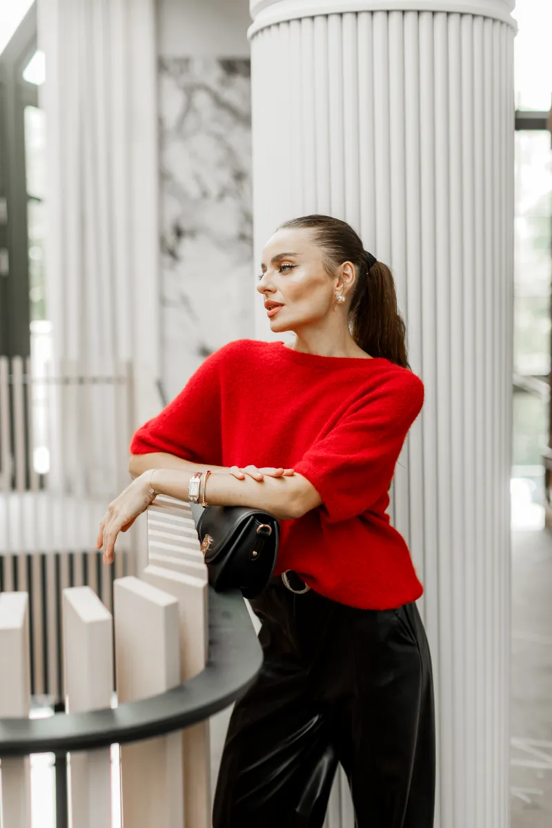 Трендовий светр з baby alpaca у яскравому червоному кольорі для стильного акценту.