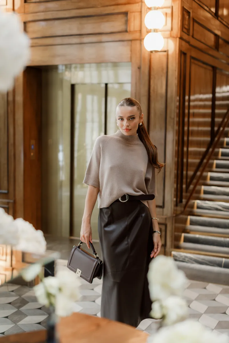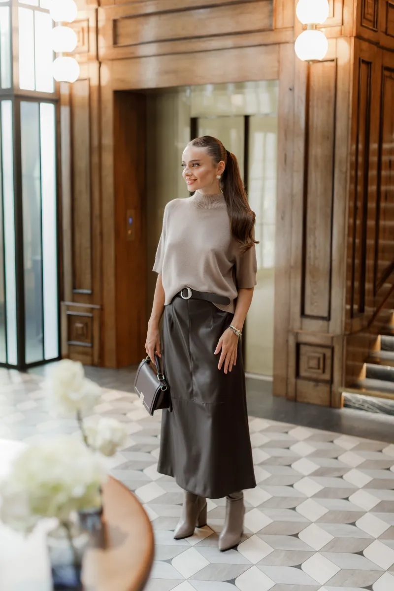 Елегантний светр з напіввільним кроєм і м’якою горловиною-стійкою