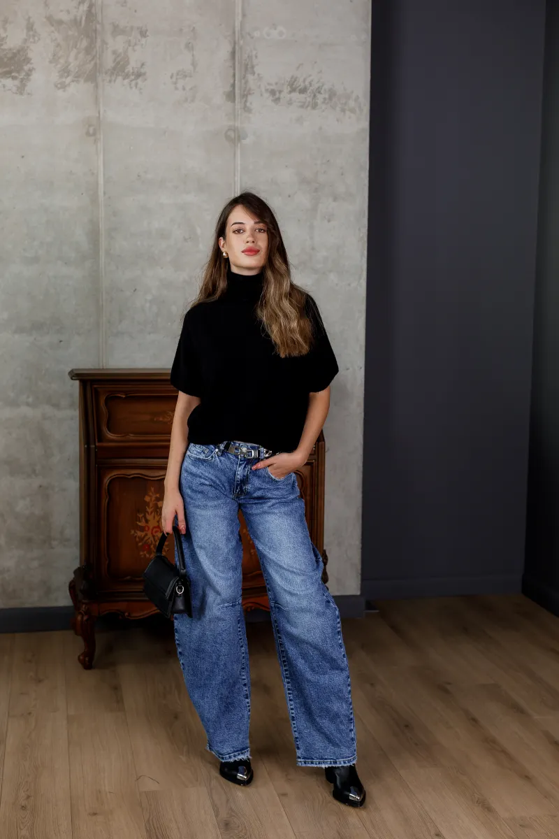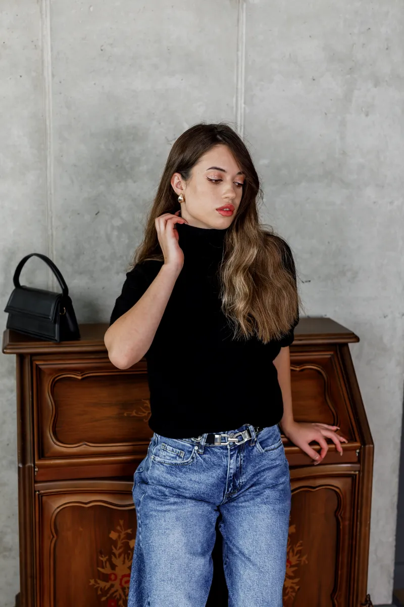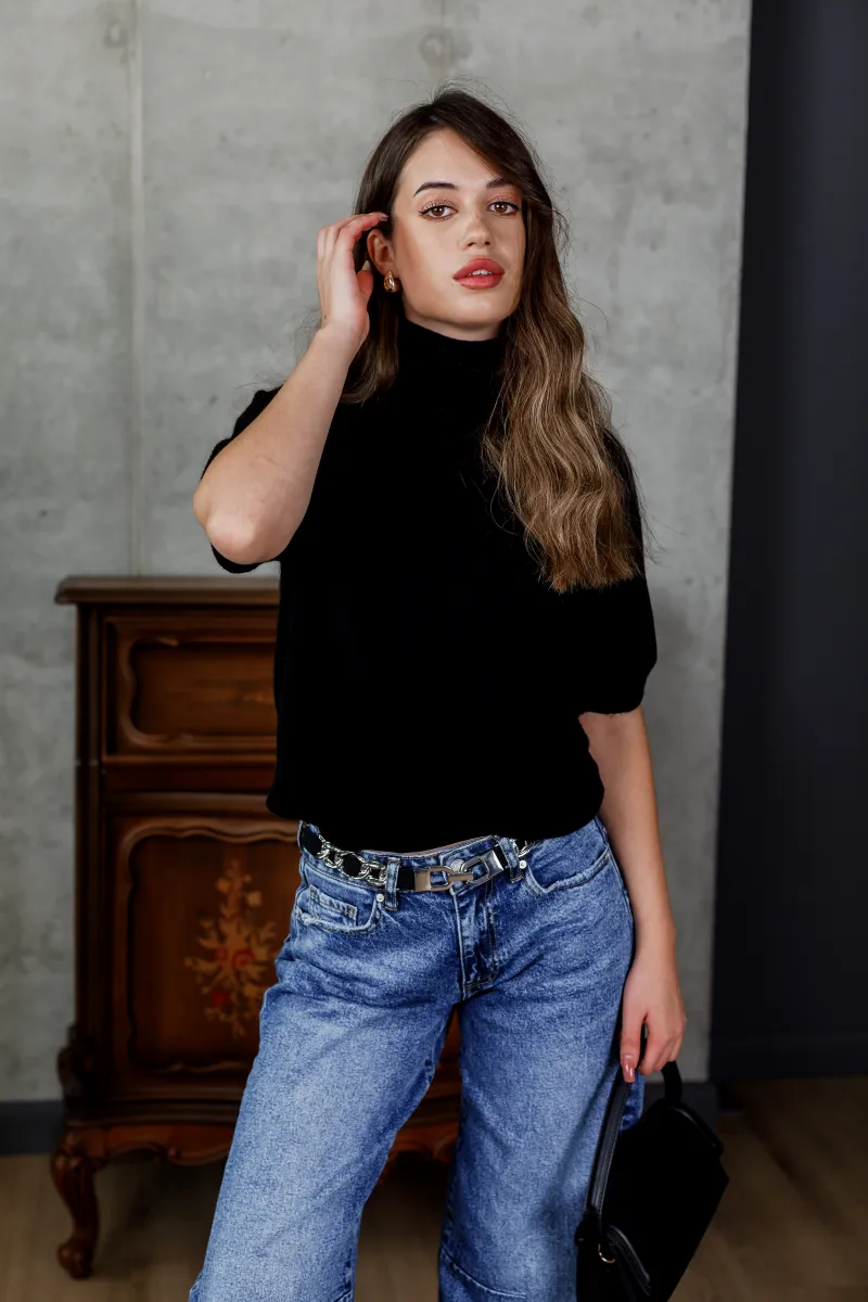 Базовий чорний светр із коротким рукавом та горловиною-стійкою