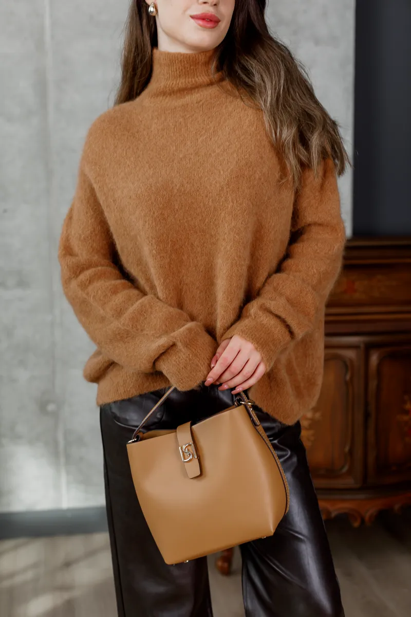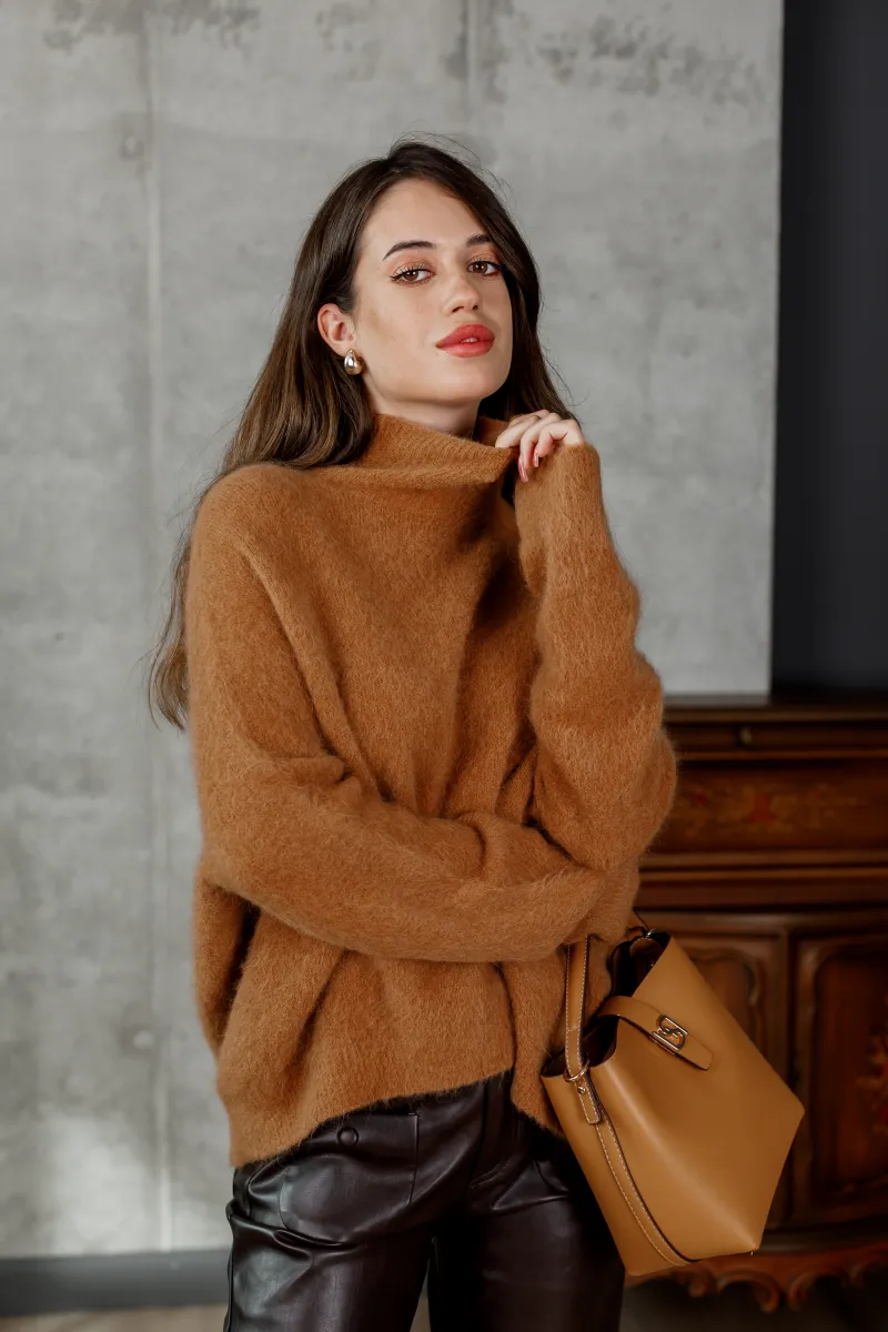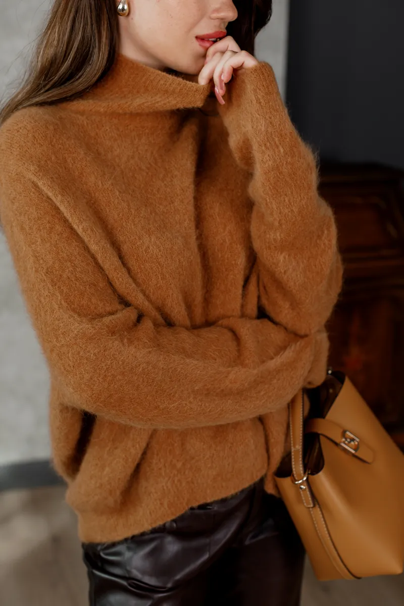 Вільний силует та високий комір-гольф надають светру невимушеної елегантності, а натуральна мохерова текстура зігріває навіть у найлютіший холод.