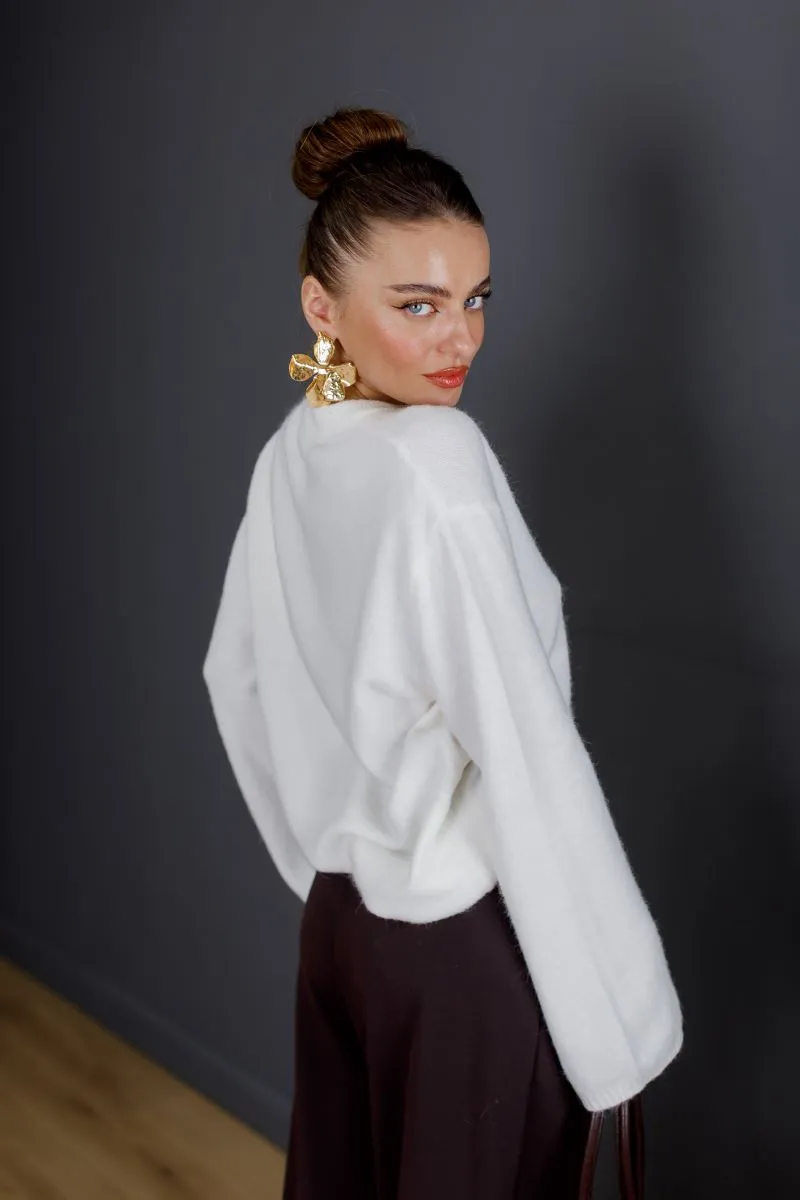Білий жіночий светр вільного крою з м’якої фактурної пряжі