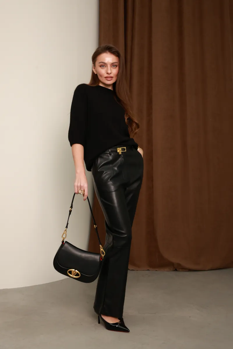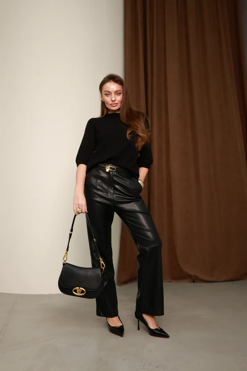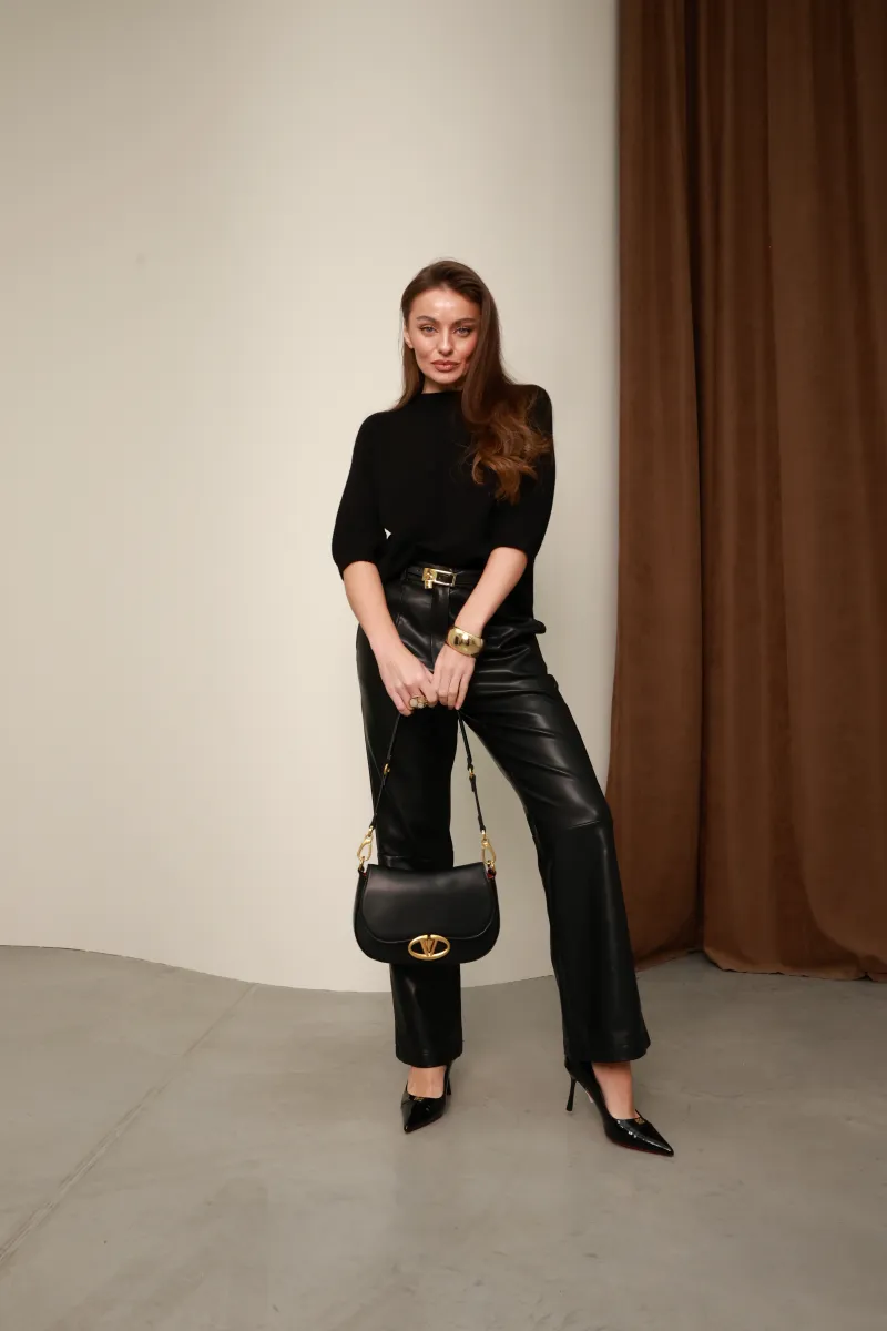 Чорний колір виглядає стримано й дорого, легко поєднується з брюками з екошкіри, класичними костюмами або спідницями, створюючи образ у стилі modern elegance та quiet luxury.