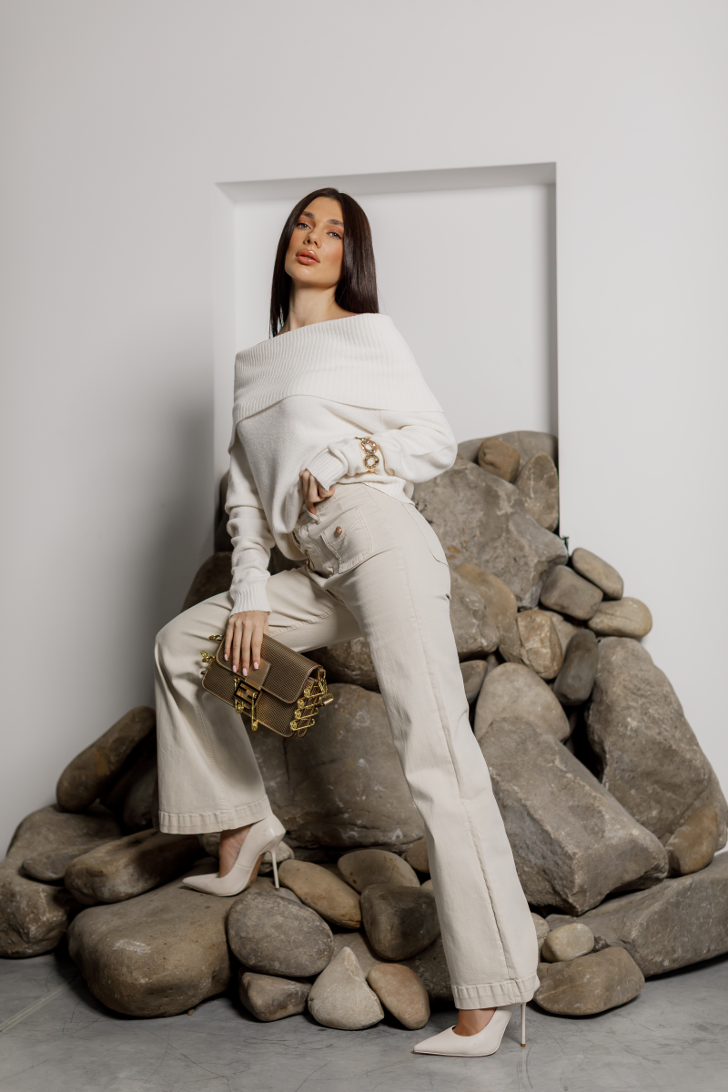 Елегантний трикотажний светр у молочному відтінку — втілення жіночності та мінімалізму.