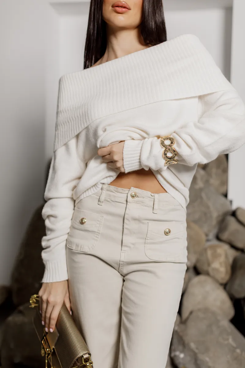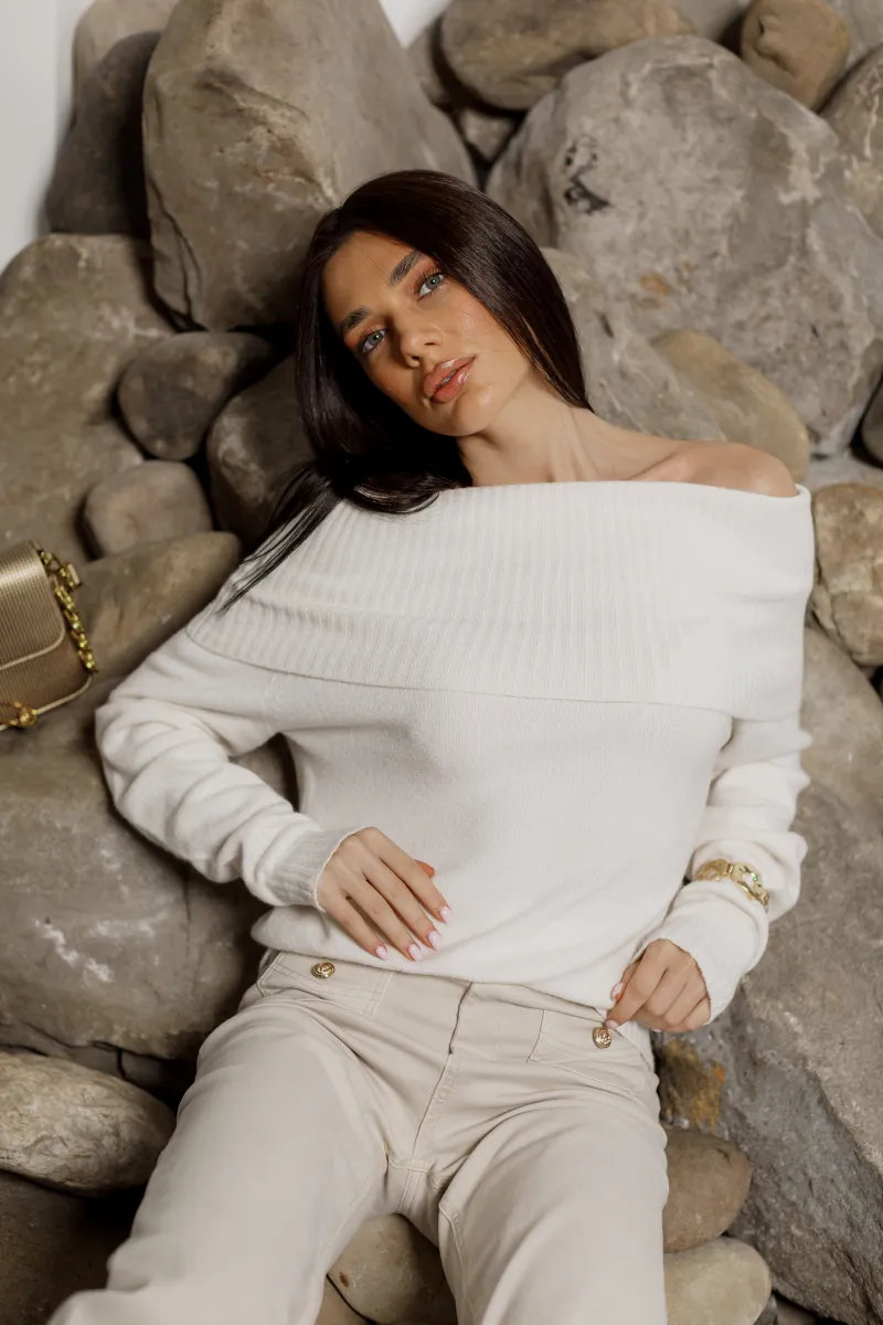 Елегантний трикотажний светр у молочному відтінку — втілення жіночності та мінімалізму.