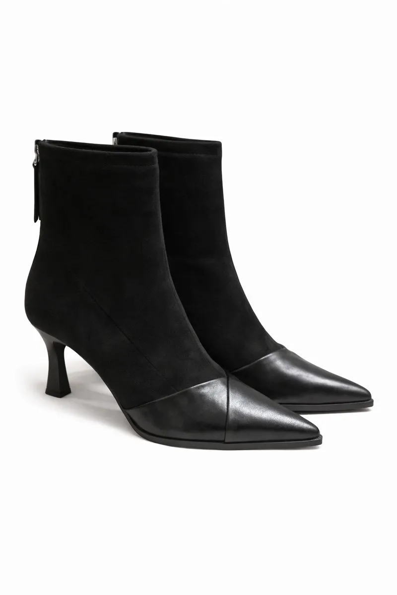 Елегантні ботильйони з поєднанням екошкіри та екозамші, з гострим носком і витонченим каблуком