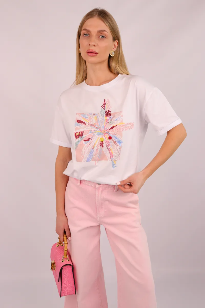 Біла футболка з ніжним принтом