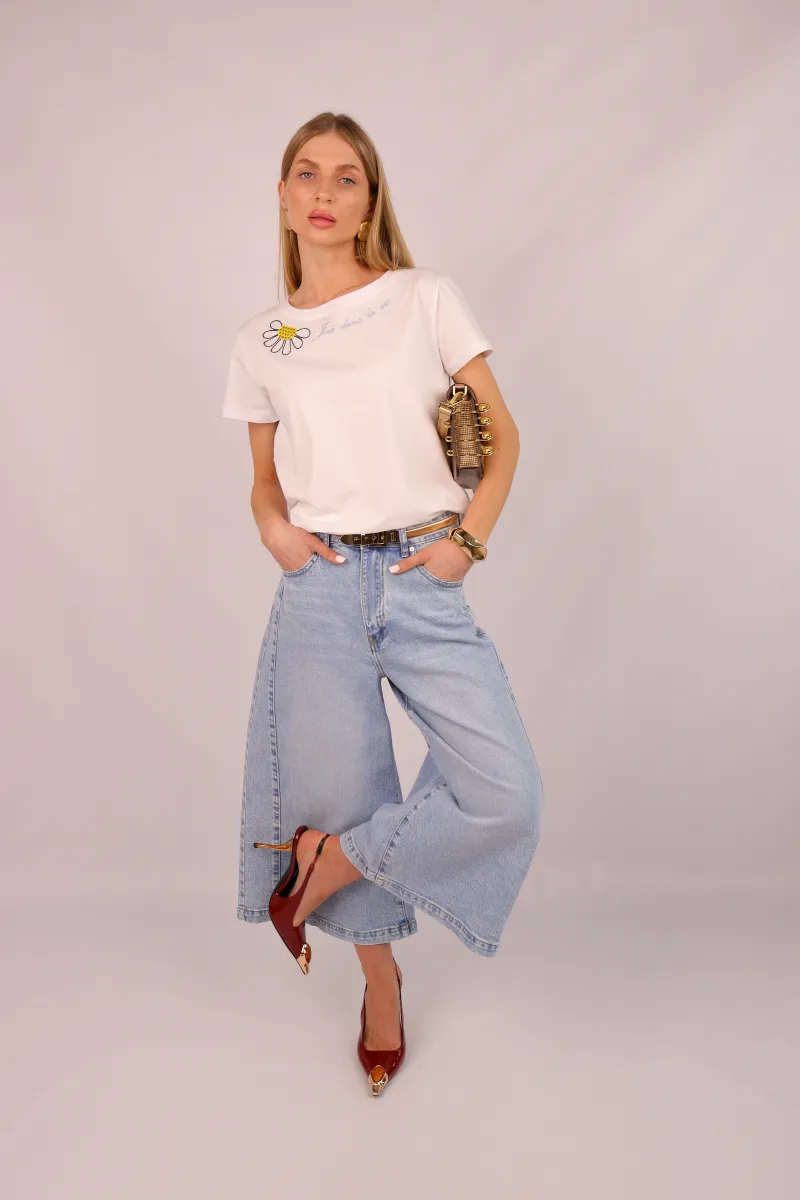Базова біла футболка з ніжною вишивкою — ідеальне поєднання мінімалізму та жіночності.