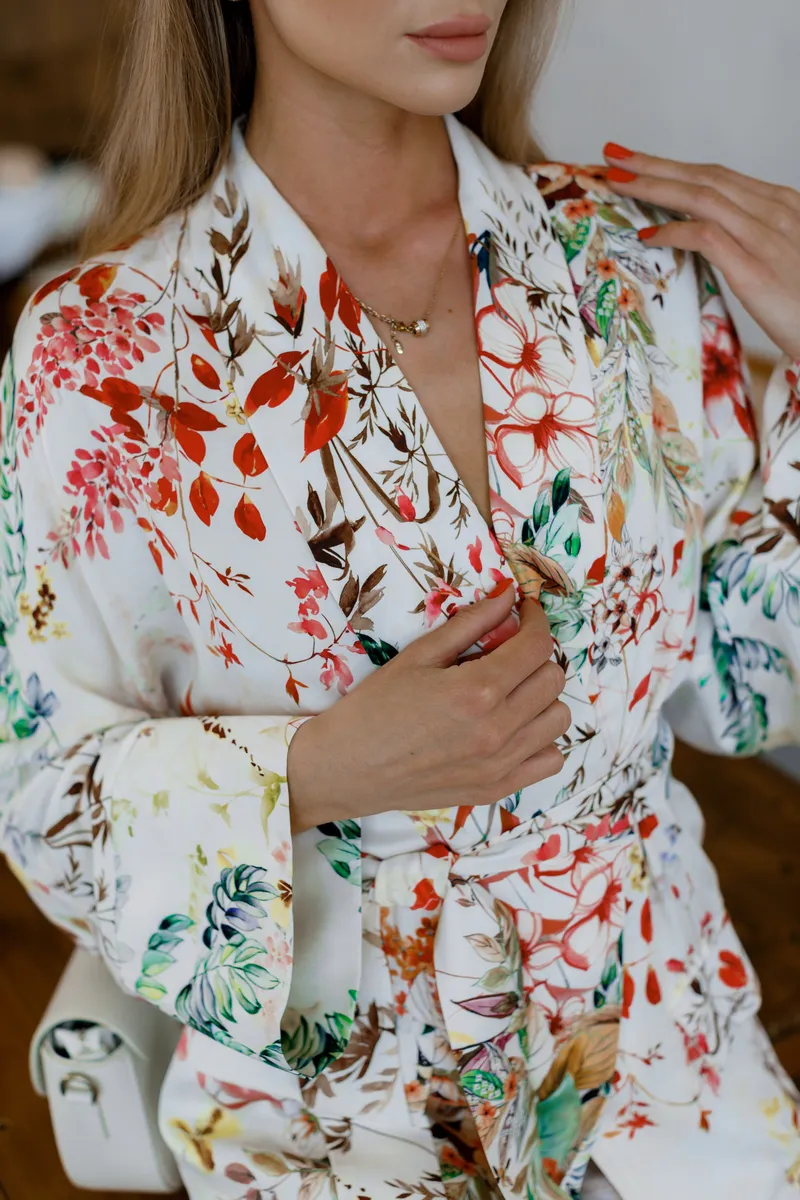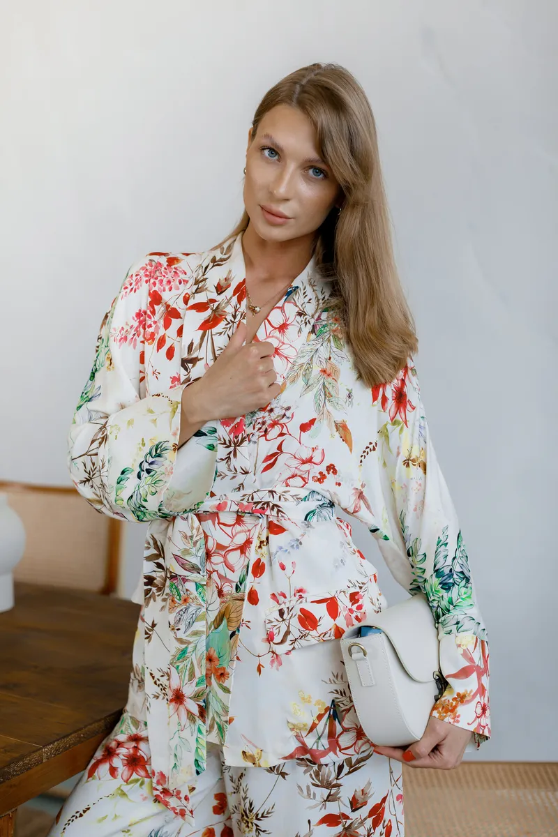 Легкий піджак з натуральної віскози, яскравий квітковий принт, пояс на талії, трендовий дизайн, італійський бренд IMPERIAL.