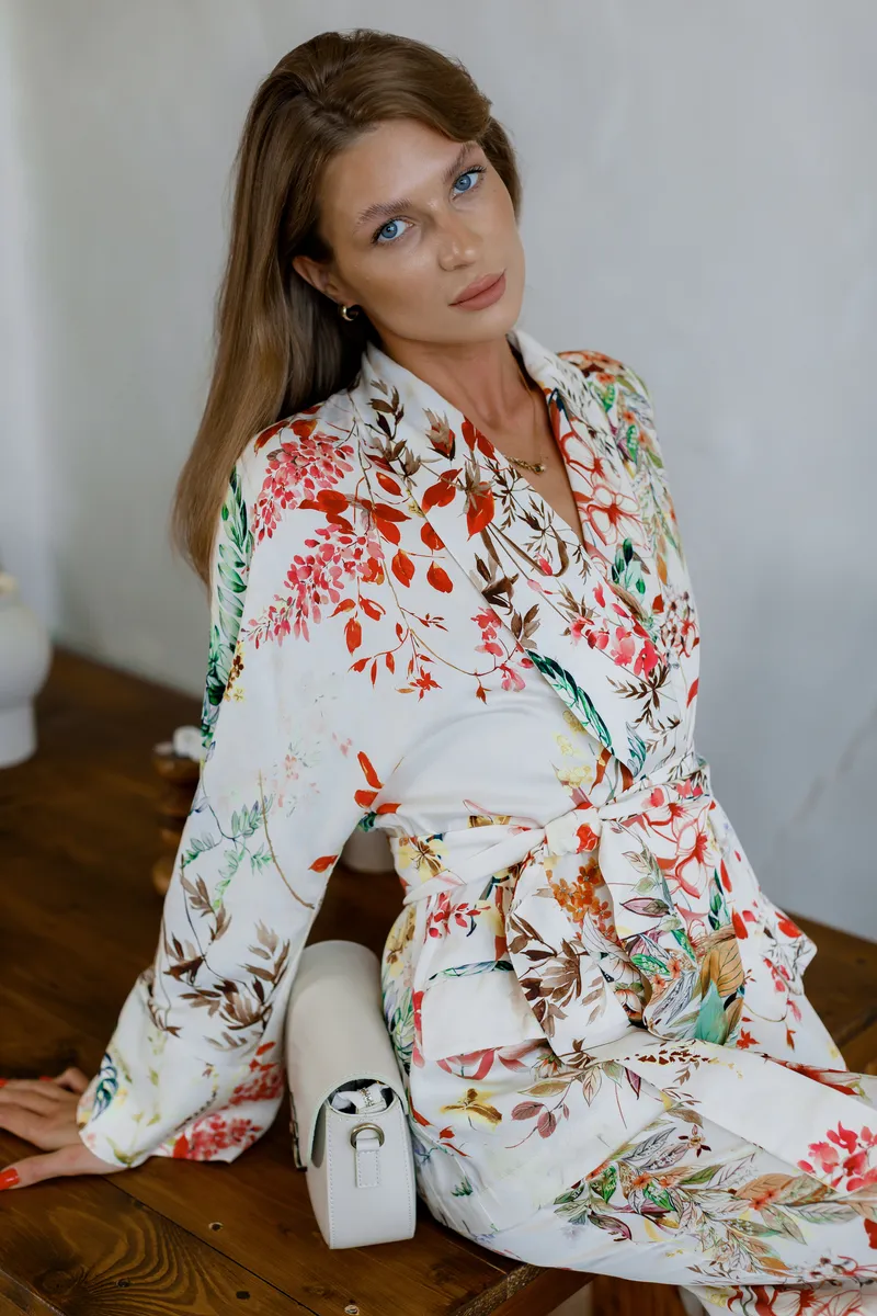 Особливу увагу привертає багатий квітковий принт, який створює живий та свіжий образ.