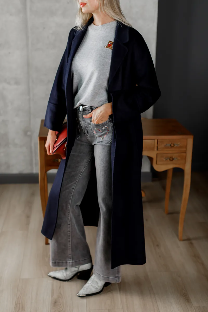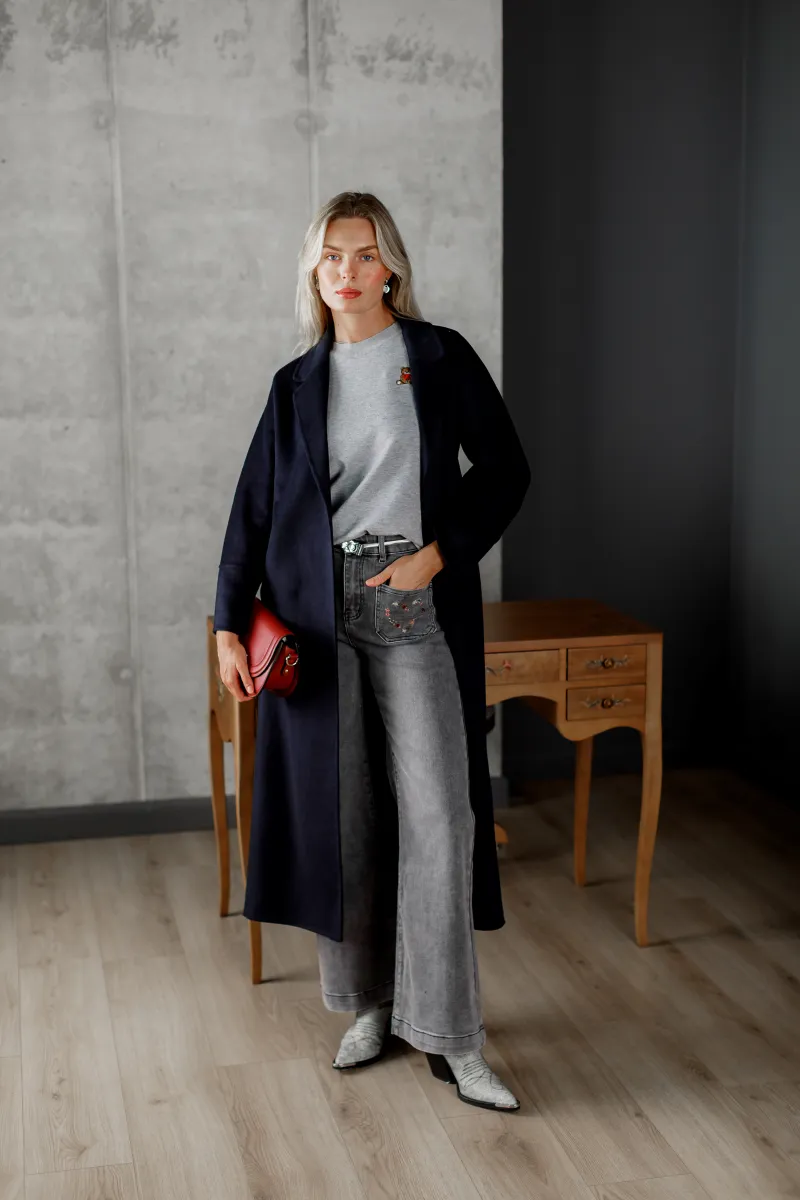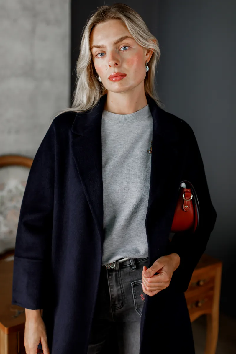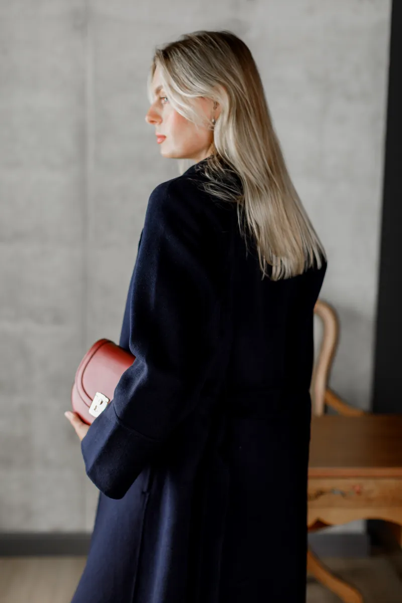 Пальто жіноче прямого крою у відтінку синього окевну, Франція
