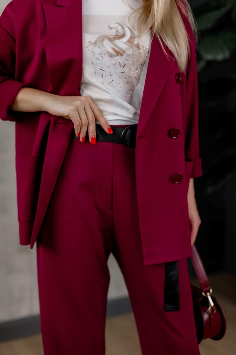 Стильний та елегантний костюм IMPERIAL у класичних кольорах чорного, шоколадного, білого та бургунді – це втілення бездоганного смаку та вишуканості.