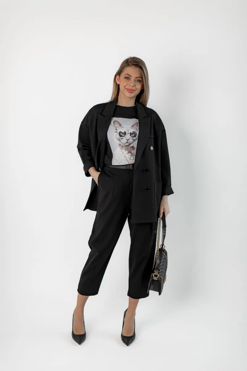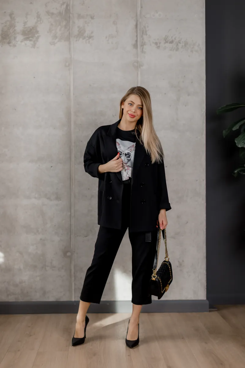 ✔ Фасон: вільний піджак + штани з високою посадкою