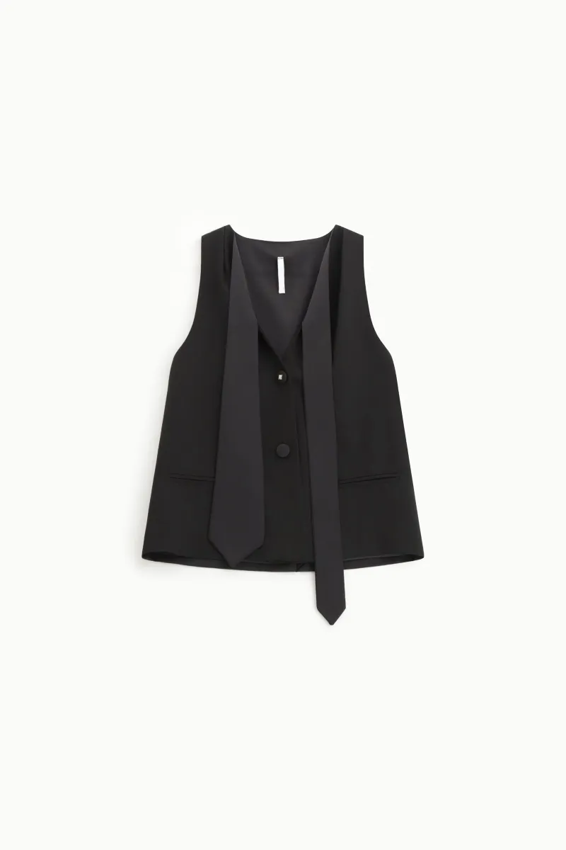 Трендовий топ-жилет без рукавів із декоративною краваткою та двома ґудзиками IMPERIAL