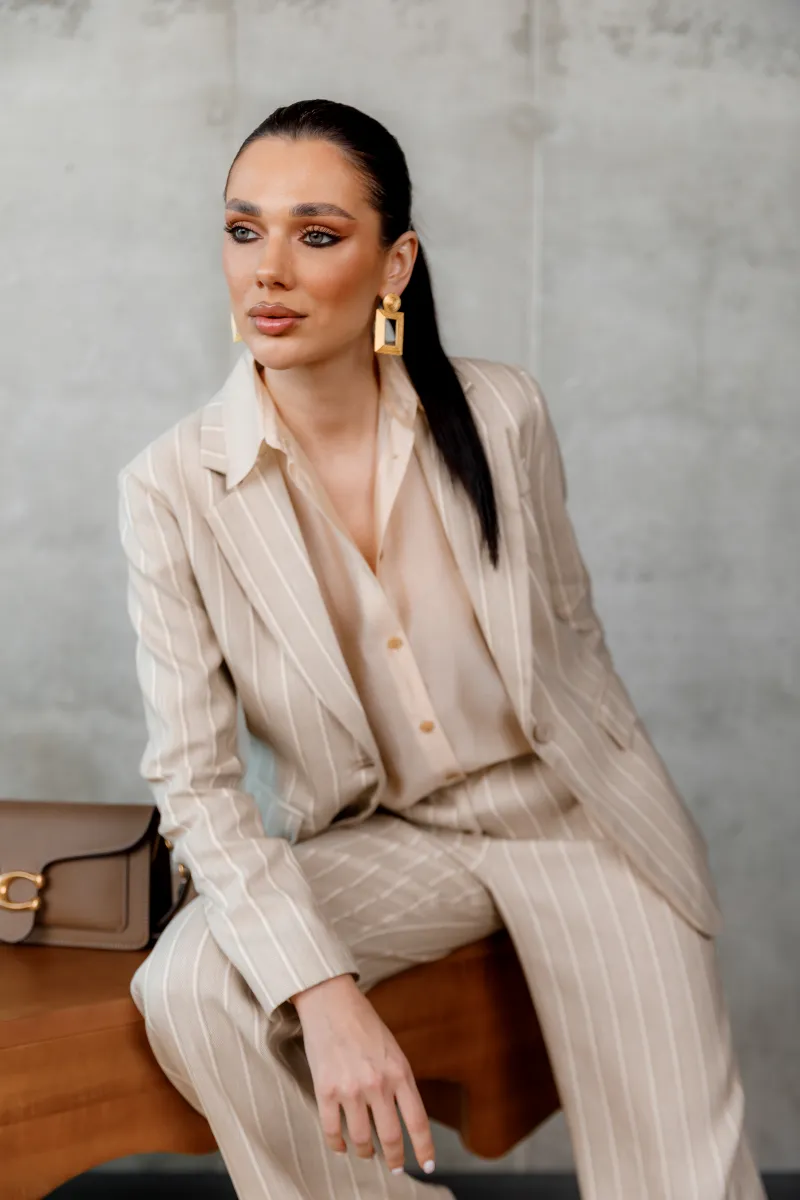 Вертикальна смужка візуально витягує силует і додає образу структури