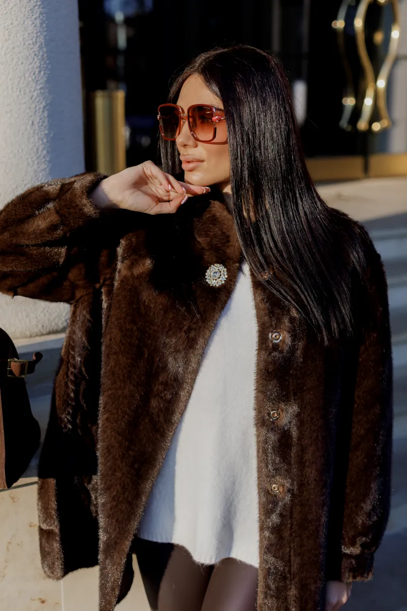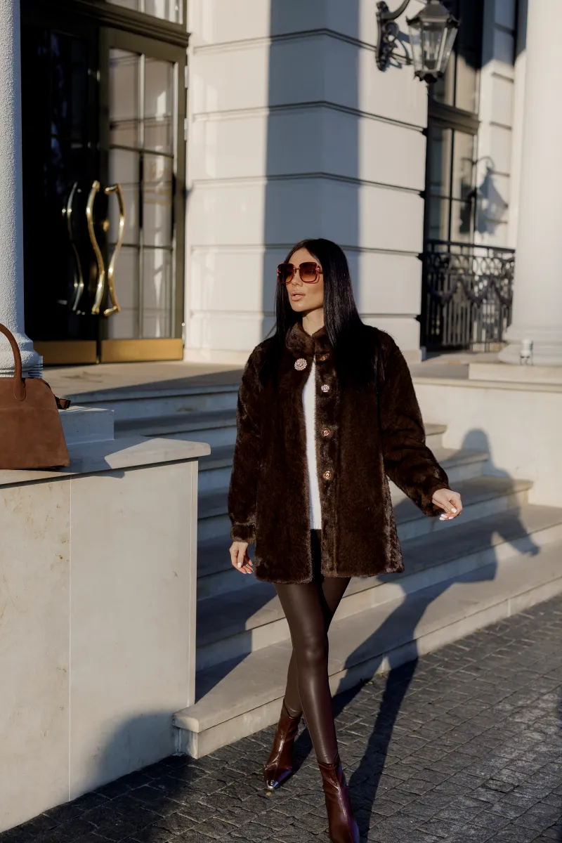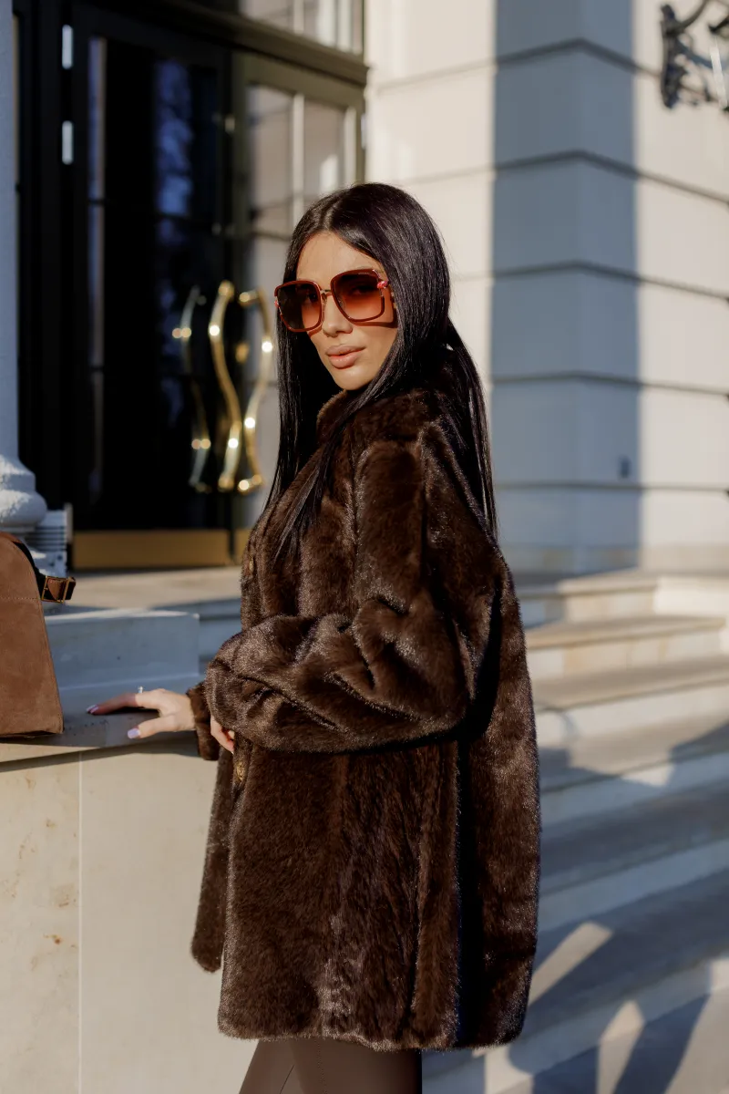 Шуба з екохутра шоколадного кольору