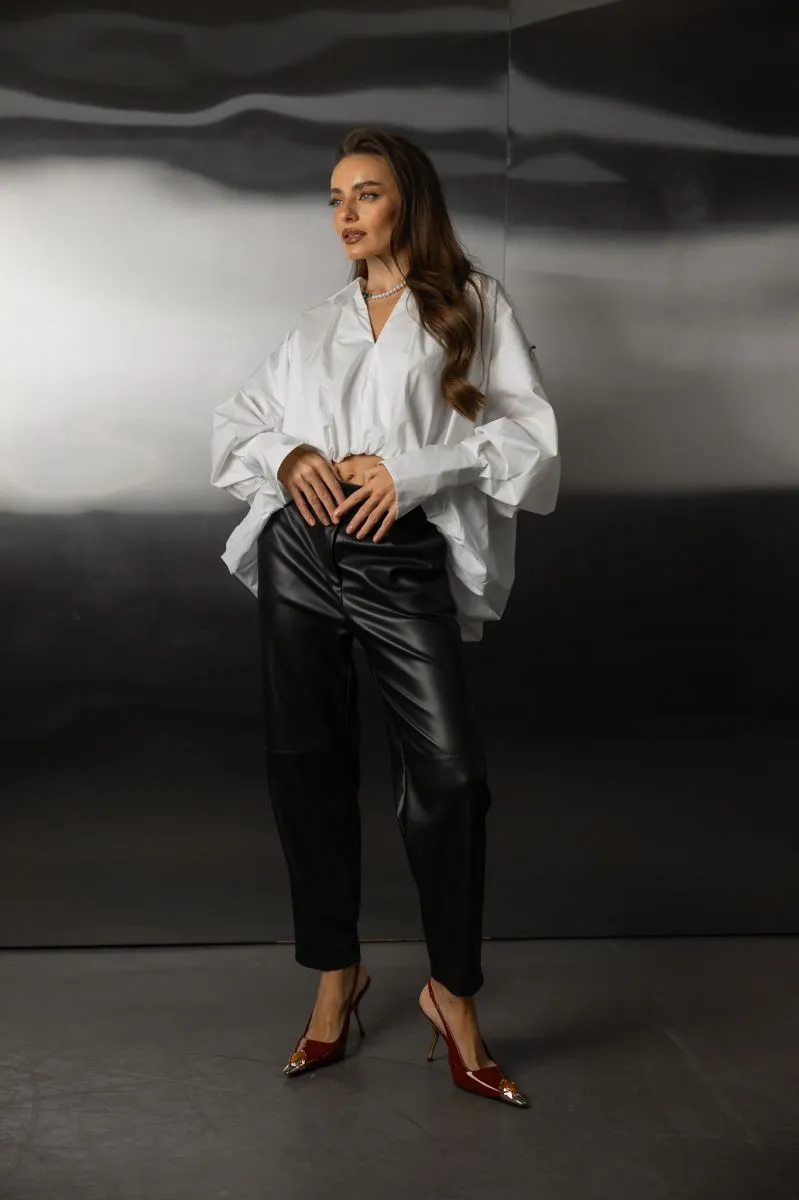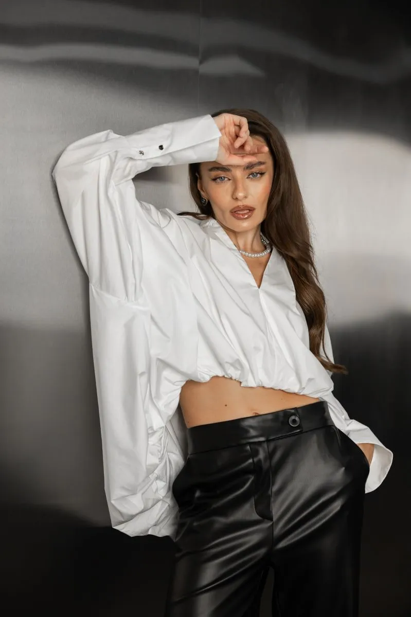 Легка об’ємна сорочка з V-вирізом — стильна класика в сучасному виконанні.
