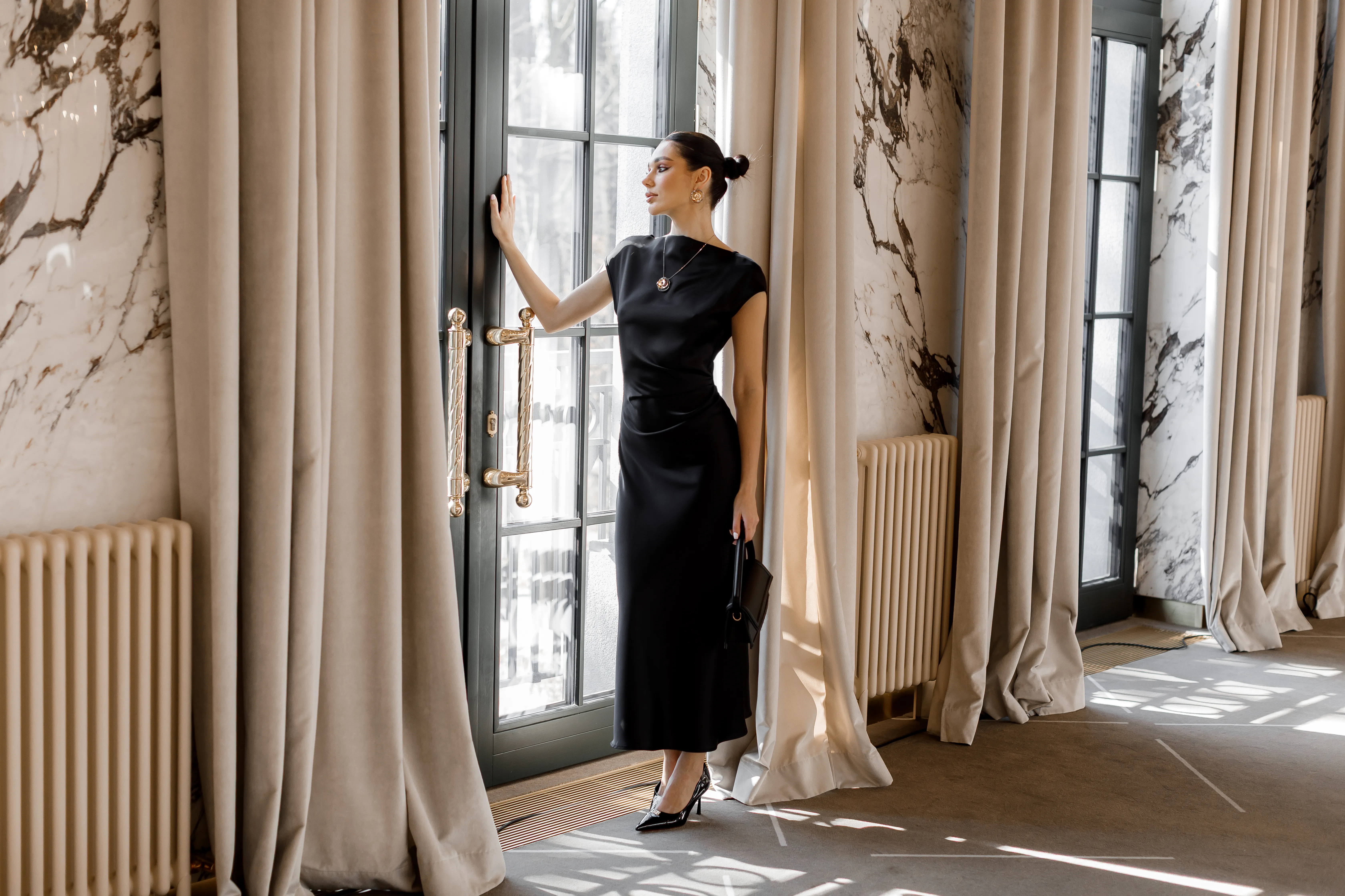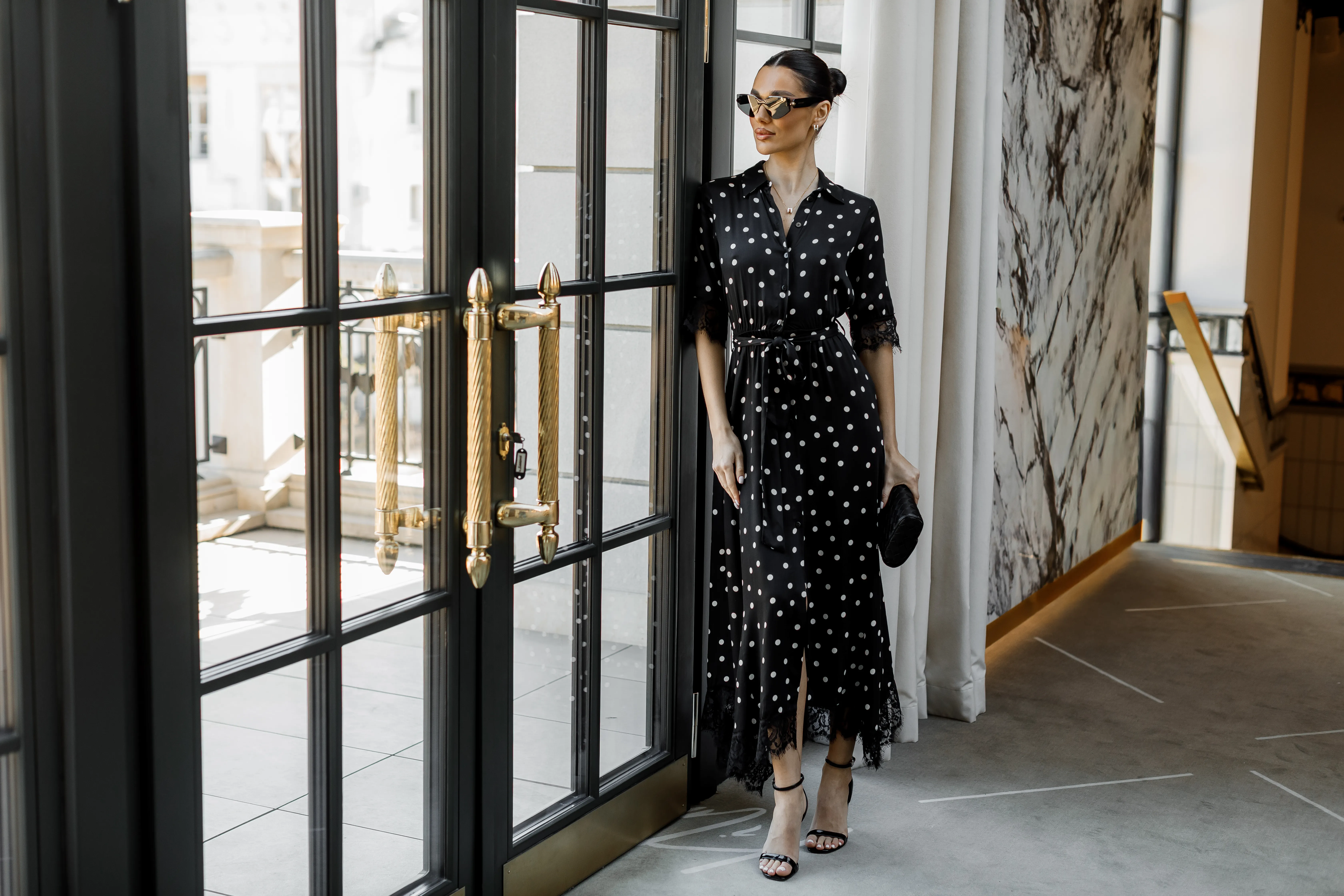 Котонова сукня-сорочка міді з принтом чорно-біла